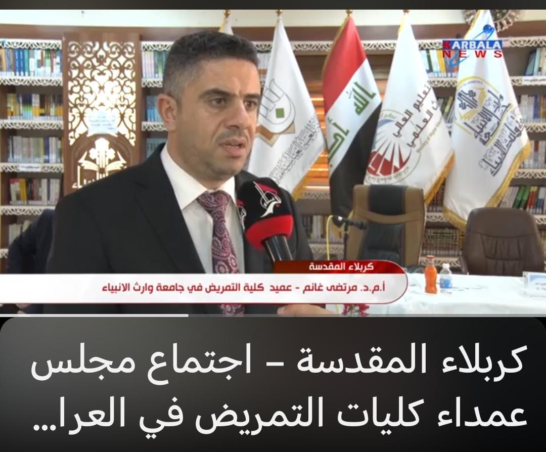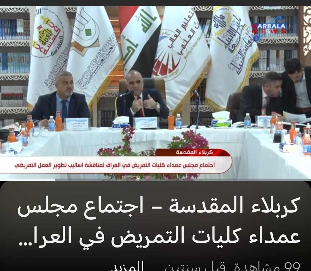 تغطية قناة كربلاء الفضائية لاجتماع مجلس عمداء الكليات في برنامج صباح كربلاء قامت قناة كربلاء الفضائية بتغطية الاجتماع لتناول اهم الامور المطلوبة لتطوير مهنة التمريض