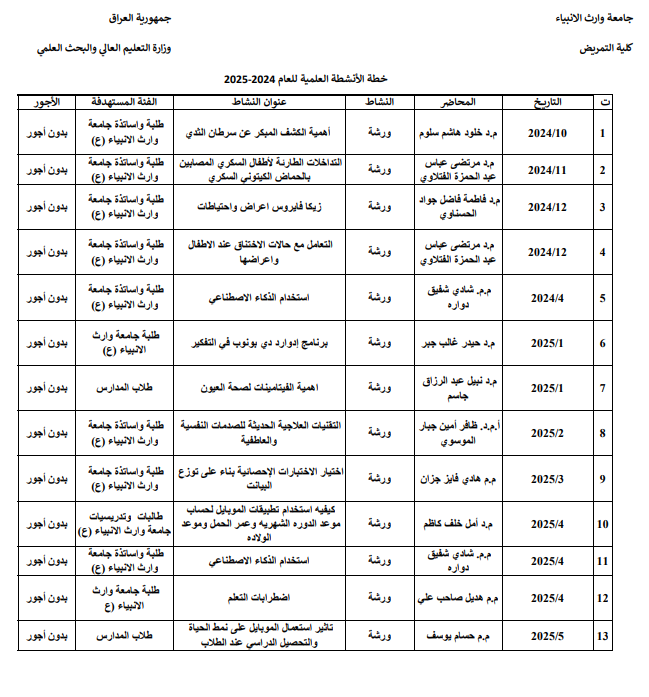 ورشة علمية مشتركة بين كلية العلوم الإسلامية في جامعة وارث الأنبياء (عليه السلام) والعتبة الحسينية المقدسة حول ترميم المخطوطات