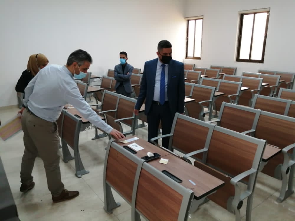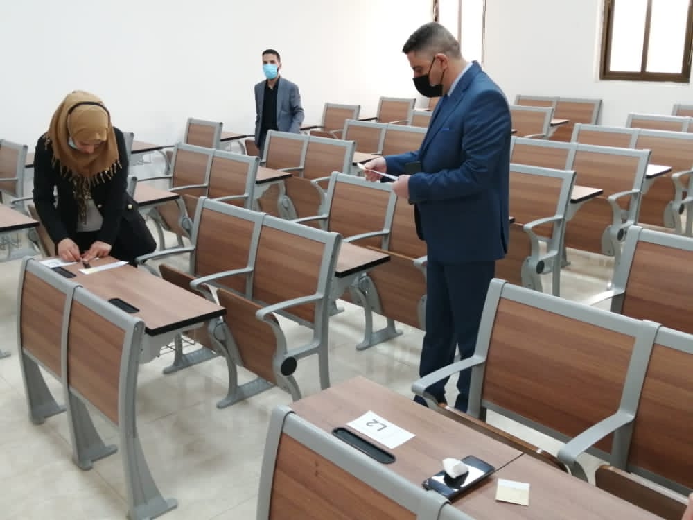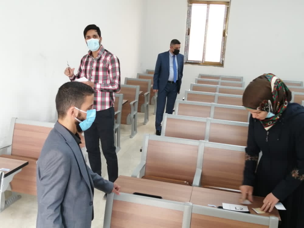 باشرت كلية التمريض بالاستعداد وتهيأة القاعات الدراسية وذلك لقرب بدأ الامتحانات النهائية الحضورية للفصل الدراسي الاول للعام الدراسي 2020-2021 من خلال تجهير المقاعد وتوزيع الطلبة على القاعات مع الاخذ بنظر الاعتبار وجود مسافة الامان بين الطلبة كإجراء احترازي من فايروس كورونا.
