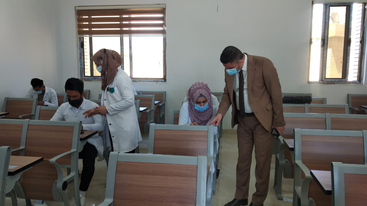 مع بدأ الامتحانات العملية الحضورية النهائية للفصل الدراسي الاول للعام الدراسي 2020-2021... قام السيد عميد كلية التمريض ( ا.م.د مرتضى غانم ) بجولة على القاعات الامتحانية والمختبرات العلمية لتفقد ومتابعة سير الامتحانات الحضورية التي بدأت اليوم الاحد بتاريخ 4/4/2021 و للمرحلتين الاولى و الثالثة.