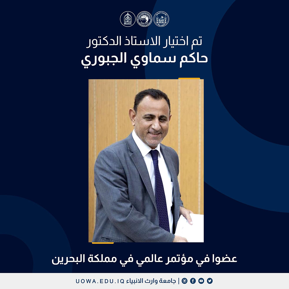 الدكتور حاكم الجبوري يمثل العراق في المؤتمر العالمي للعلوم والهندسة في البحرين