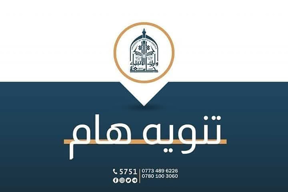 احتضنت جامعة وارث الأنبياء (عليه السلام) ورشة تدريبية نظمتها وزارة التعليم العالي والبحث العلمي/ دائرة التعليم الجامعي الأهلي، بعنوان (نظام إدارة معلومات الطالب (SIS) ونظام إدارة الموارد البشرية (HRMS).