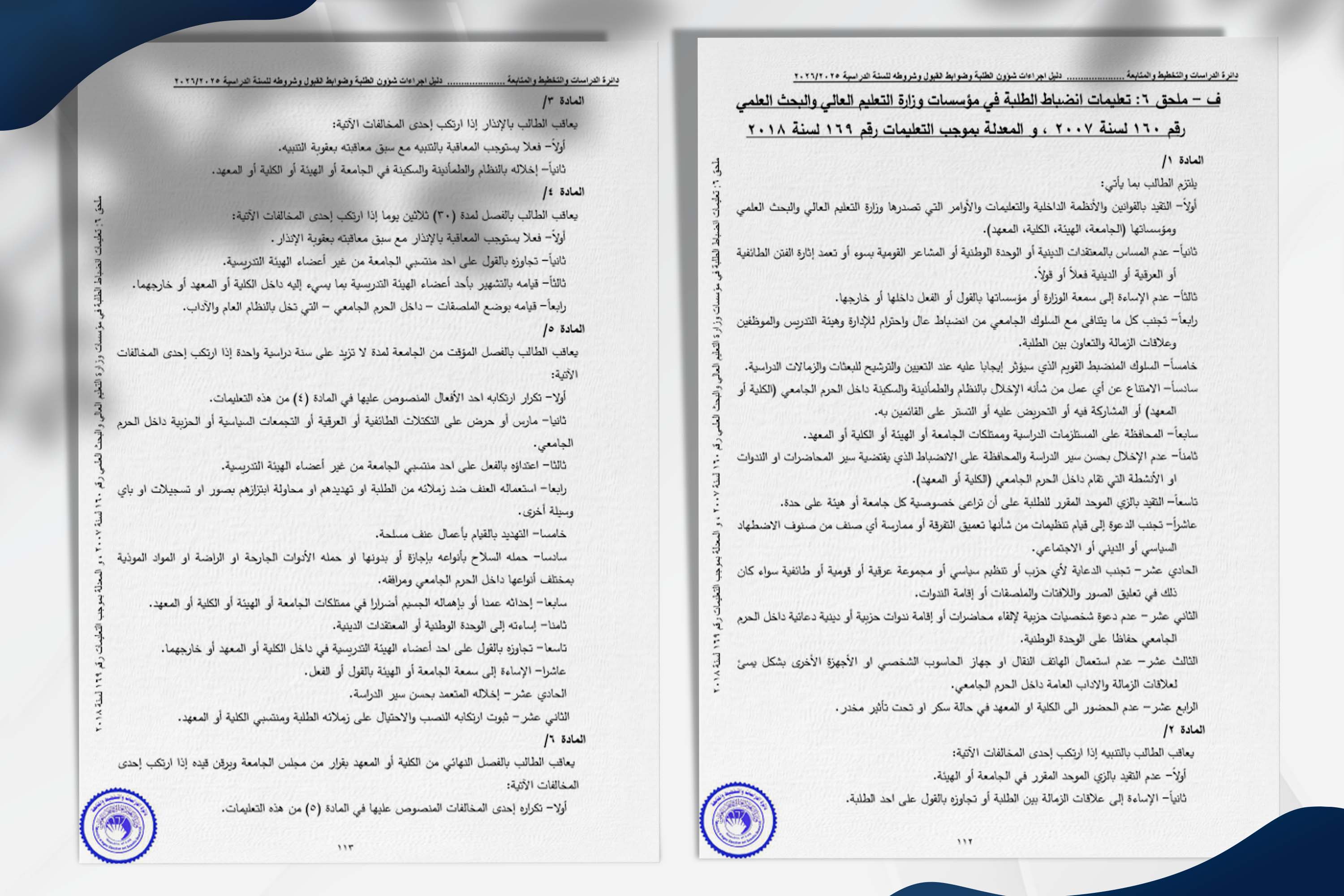 وجاء في نص القرار: حرصاً على مستقبل أبنائنا الطلبة، ولمعالجة الحالات الخاصة بالذين لم يتمكنوا من اجتياز السنة الدراسية 2025/2024 بنجاح بسبب ظروفهم الدراسية، تقرر احتساب السنة الدراسية 2025/2024 سنة عدم رسوب للطلبة الذين سترقن قيودهم في الدراسات الأولية (الصباحية والمسائية) وفي جميع الأنظمة الدراسية المعتمدة للسنة المذكورة.