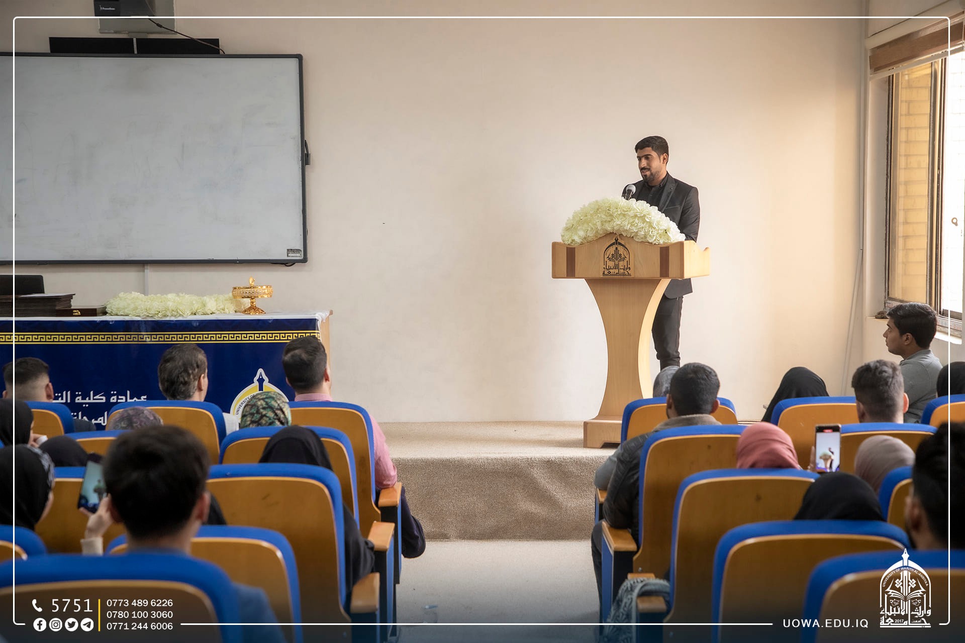 نظمت كلية العلوم في جامعة وارث الأنبياء (عليهم السلام)، بالتعاون مع مركز وارث للريادة والابتكار والتطوير، ندوة علمية مميزة قدمها المدرس المساعد صفاء السيلاوي. تركزت الندوة على موضوع "الثقة بالنفس ودورها في تنمية المهارات الشخصية للطالب الجامعي".تناولت الندوة العديد من الجوانب المتعلقة بأهمية بناء الثقة بالنفس لدى الطلاب الجامعيين وكيف يمكن أن تلعب دورًا حيويًا في تطوير مهاراتهم الشخصية. قدم المدرس المساعد صفاء السيلاوي رؤى وأفكارًا تساعد الطلاب على فهم كيفية تعزيز الثقة بالنفس وتأثيرها على تطويرهم الشخصي والأكاديمي.شارك الطلاب في الندوة بنقاشات فعّالة وطرح الأسئلة، مما أضفى جوًا من التفاعل والمشاركة الفعّالة. يأتي هذا النشاط في إطار جهود الكلية لتعزيز تنمية الطلاب بشكل شامل، وتطوير مهاراتهم الشخصية لتمكينهم من تحقيق النجاح الأكاديمي والمهني.