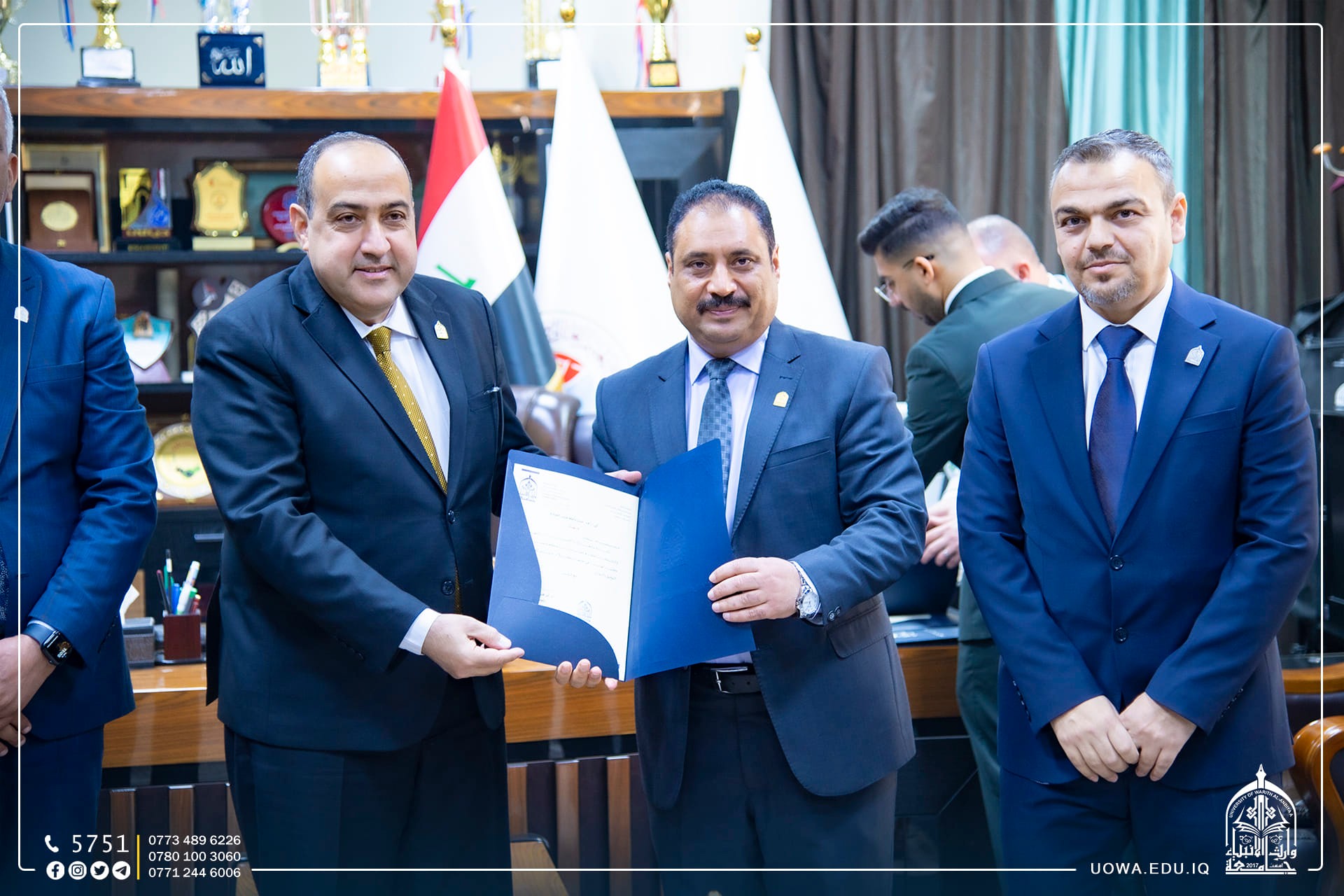 حرصا على تعزيز الاواصر العلمية والاكاديمية مع المؤسسات التعليمة ، زار رئيس الجامعة الاستاذ الدكتور ابراهيم الحياوي، والمساعد العلمي الاستاذ الدكتور واقد الموسوي،والوفد المرافق لهما ، رئاسة جامعة كربلاء لتقديم التهاني والتبريكات لتجديد الثقة لمساعدي رئيس جامعة كربلاء الإداري والعلمي، الاستاذ الدكتور اكرم الياسري، والاستاذ الدكتور نجم عبدالحسين، بالإضافة الى تهنئة عمداء الكليات الذين تسنموا مناصبهم حديثاً.