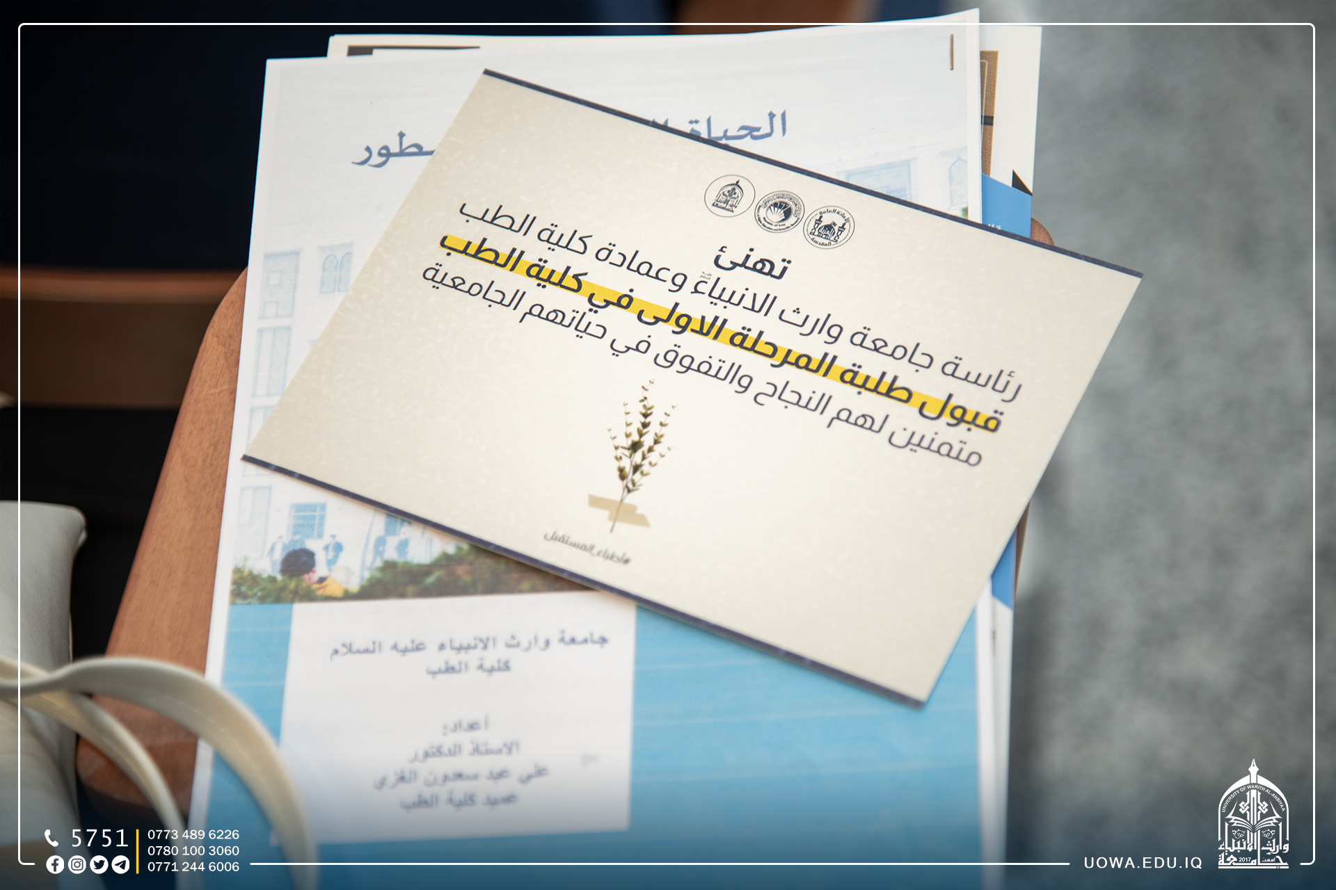 التقى السيد رئيس الجامعة الاستاذ الدكتور ابراهيم الحياوي بطلبة المرحلة الاولى في كلية الطب ، حيث رحب بهم وهنأهم لقبولهم في الكلية، داعيا اياهم بالالتزام بالدوام الرسمي و الضوابط و التعليمات الجامعية والاجتهاد في تحصيل العلم لانهم اطباء المستقبل.