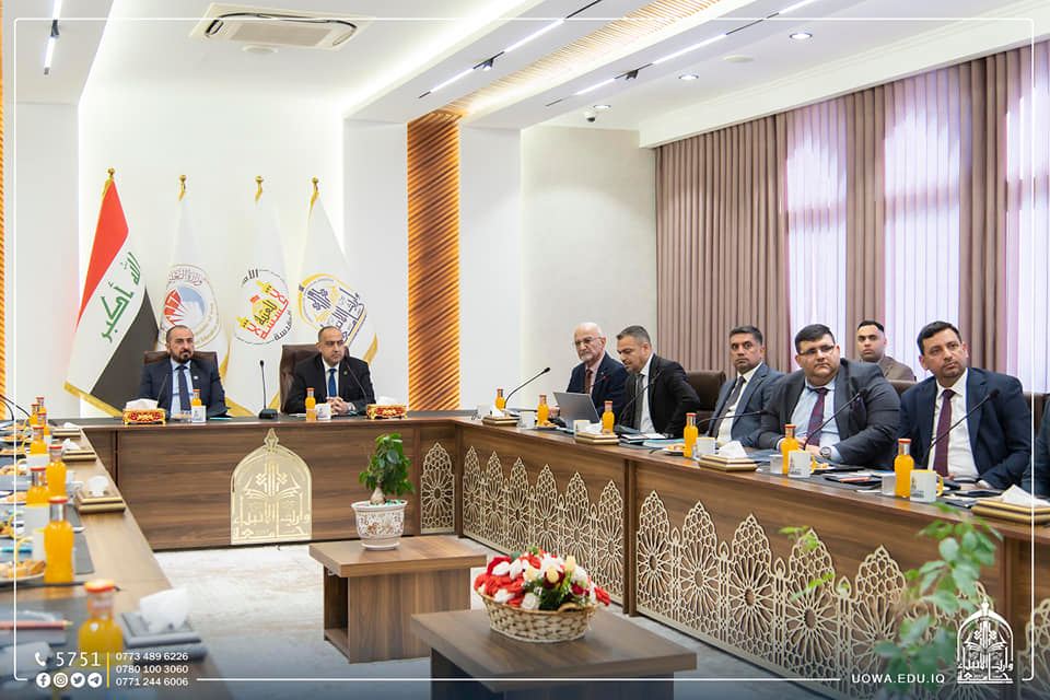 اذ بدء فريق خبراء التدقيق اولى خطواته بعقد إجتماع مع رئاسة الجامعة، وعمداء الكليات، ورؤساء الاقسام العلمية لعرض متطلبات المؤسسة مع ما وفرته الجامعة من ادلة ووثائق.