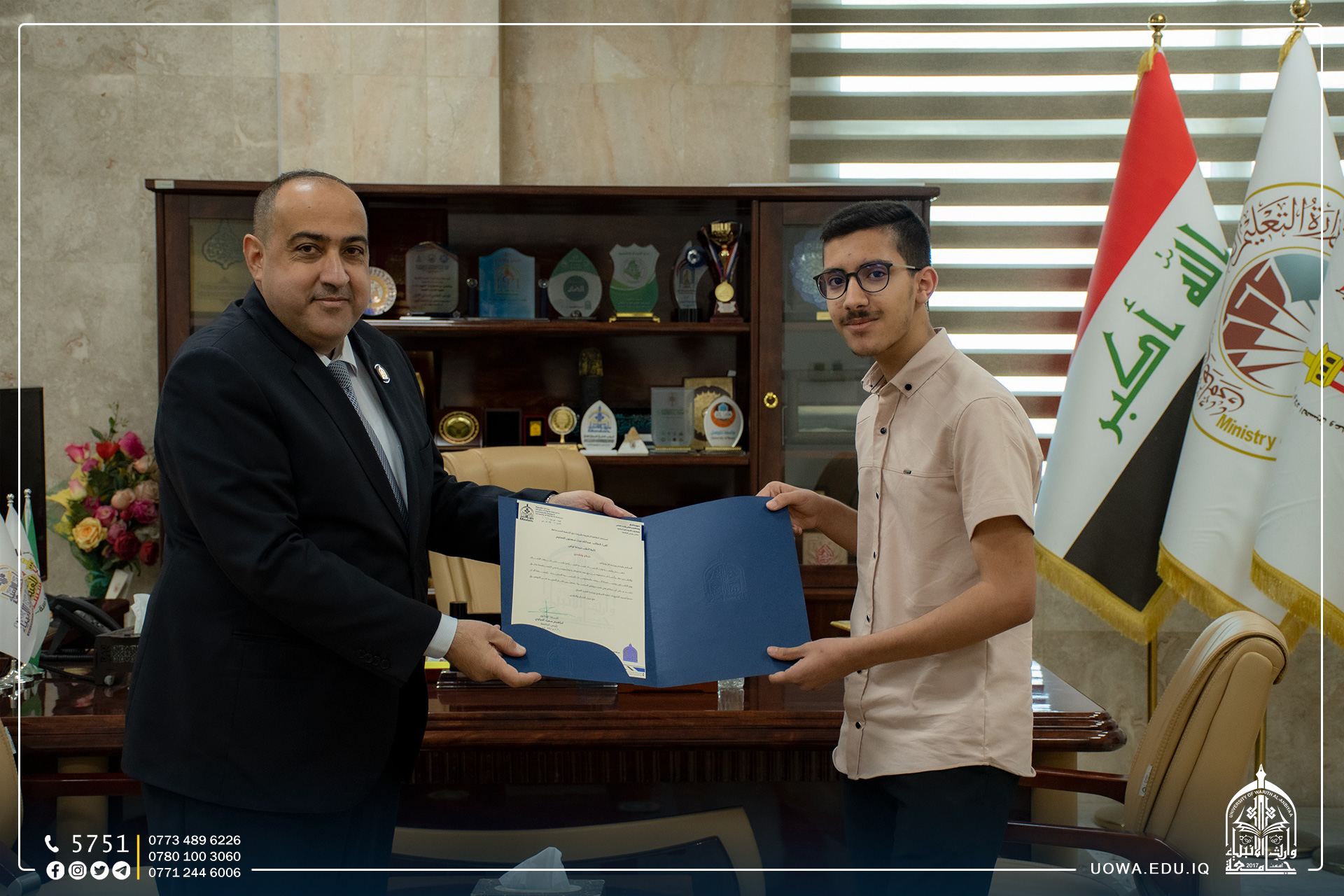 كرم رئيس جامعة وارث الانبياء(عليه السلام) الاستاذ الدكتور ابراهيم الحياوي، الطالب