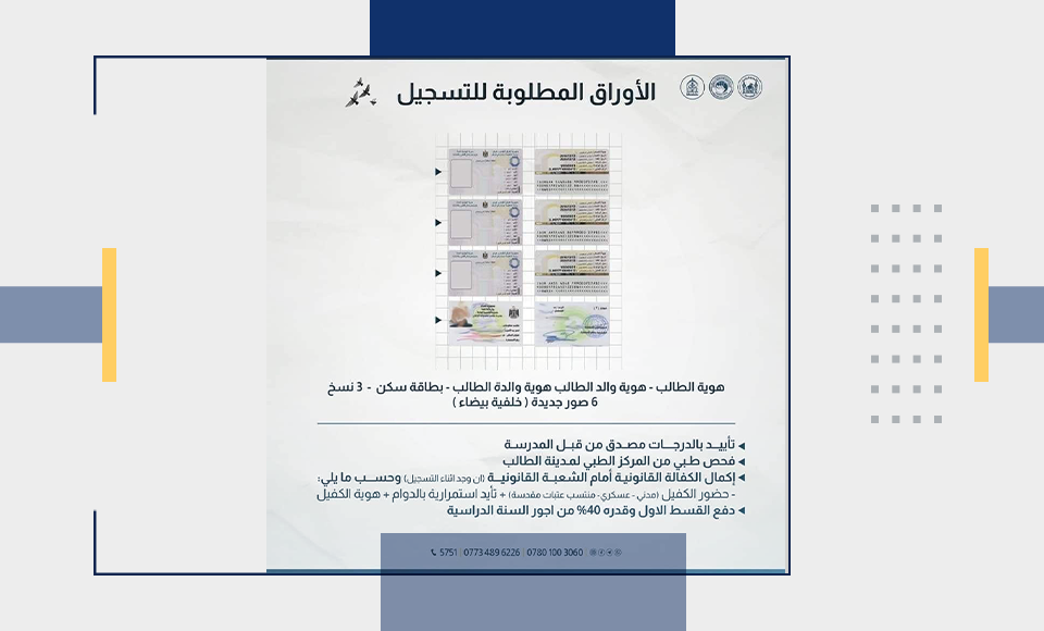 -حضور الكفيل مع تأييد استمراية الخدمة وهوية الدائرة( يمكن جلب الكفيل خلال شهر من تاريخ التسجيل)
