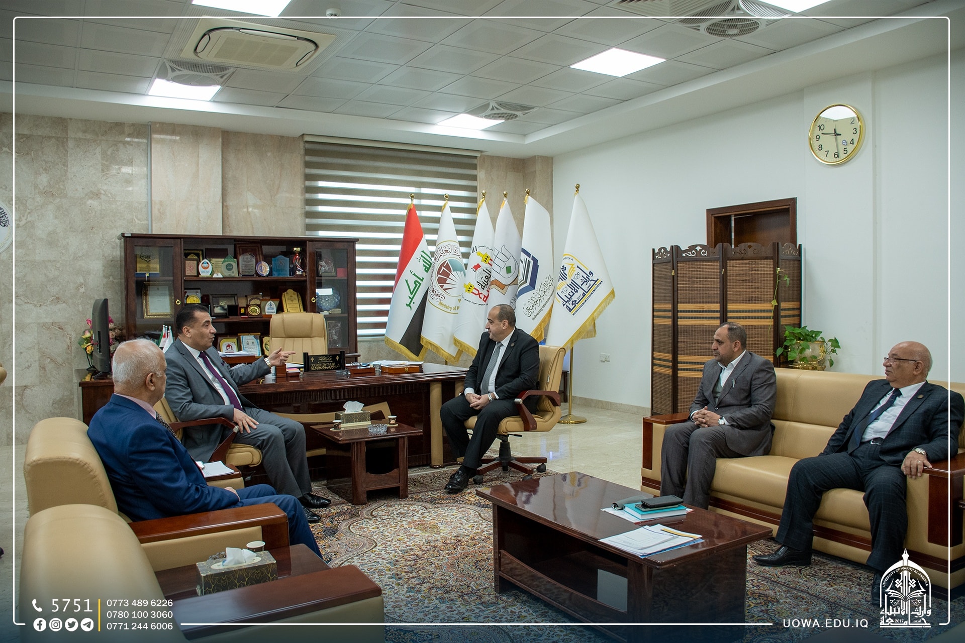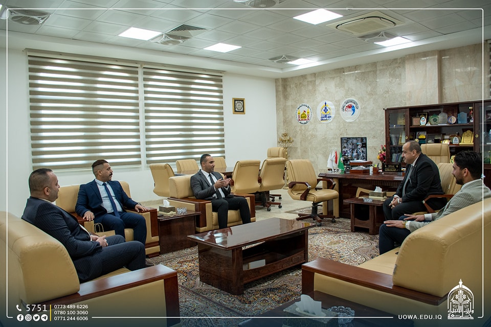 استقبل السيد رئيس الجامعة الاستاذ الدكتور ابراهيم الحياوي وفد من مديرية الامن الوطني في محافظة كربلاء المقدسة