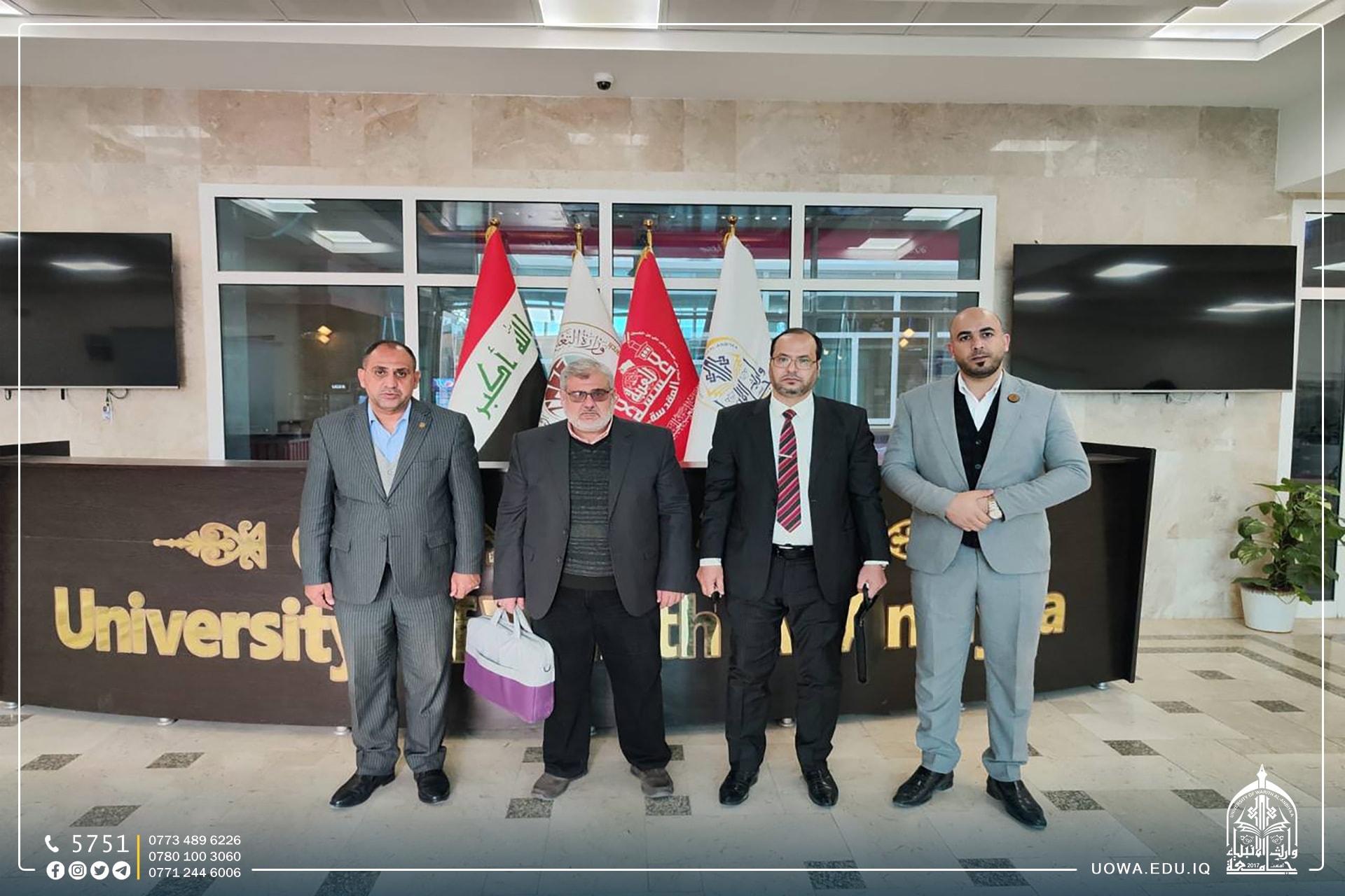 من أجل تعزيز التعاون العلمي في بنشر البحوث الرصينة بين جامعتي كربلاء ووارث الانبياء (عليه السلام)، زار السيد رئيس جامعة وارث الانبياء الاستاذ الدكتور ابراهيم سعيد الحياوي يرافقة المساعد الاداري الاستاذ الدكتور نوفل الاعرجي والوفد المرافق لهما جامعة كربلاء.