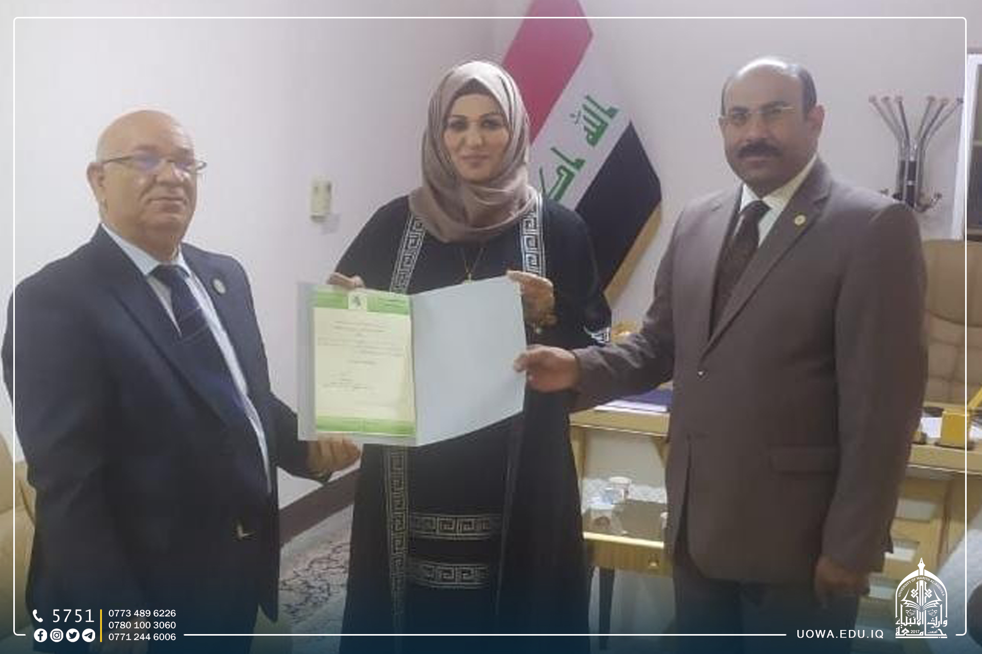 ومن جانبها قدمت عمادة كلية الادارة والاقتصاد في جامعة كربلاء كتاب شكر وتقدير للدكتور محمد مجيد تثميناً لجهوده وسعيه في دعم العملية التعليمة .