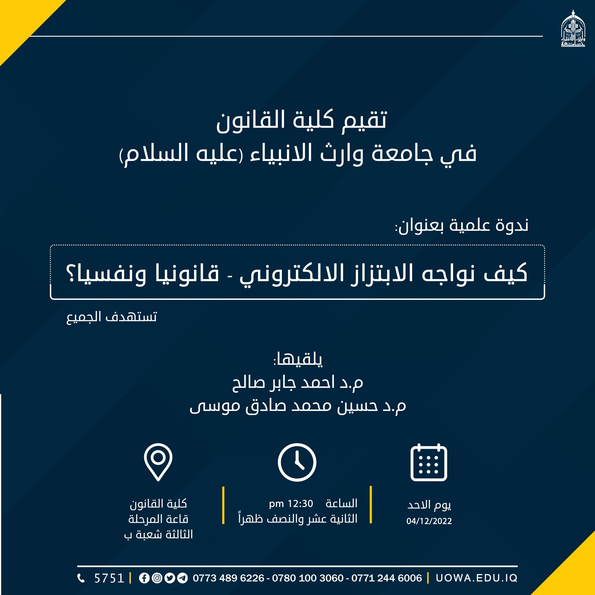"كيف نواجه الابتزاز الالكتروني" ندوة علمية تقيمها كلية القانون