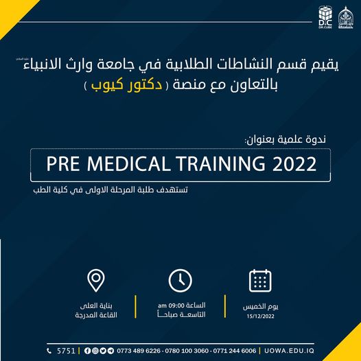 الموافق (3/12/2022) وذلك على قاعة الورش في كلية الطب.