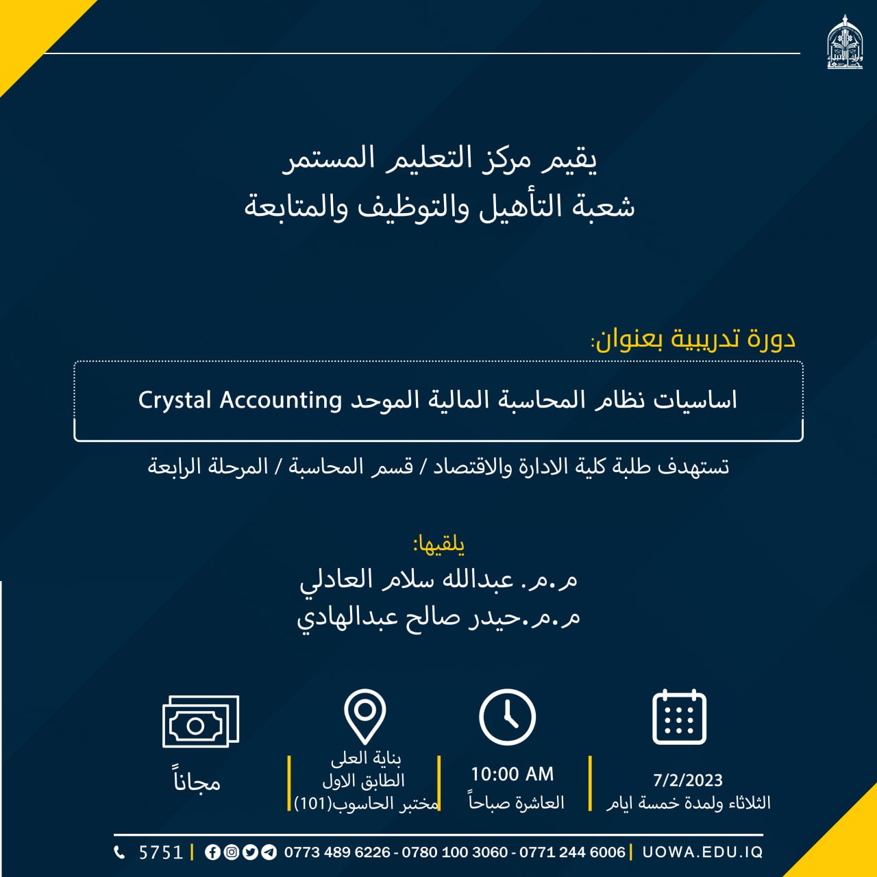 اجور الدورة25000 الف دينار عراقي للمشترك الواحد (يتم تسهديدها في قسم الشؤون المالية في جامعة وارث الانبياء).مجاناً لطلبة جامعة وارث الانبياء.