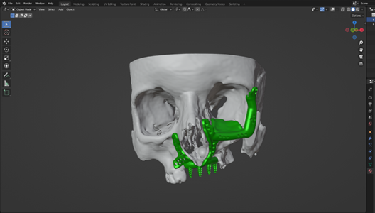 This personalized implant serves as a precise anatomical replacement for the missing bone structure and represents a major step toward 3D printing it in a biocompatible material such as titanium. The goal is not only to restore facial aesthetics but also to support improved medical outcomes and quality of life.