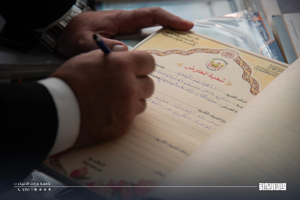 On the occasion of the birth anniversary of Lady Zaynab (peace be upon her), Warith Al-Anbiyaa University (AS) hosted the “Good Tree of the Book” exhibition, organized by the Department of Religious Festivals and Occasions at the Holy Husayni Shrine, with the presence of the University President, Prof. Dr. Ibrahim Saeed Al-Hayawi, along with faculty members and students.