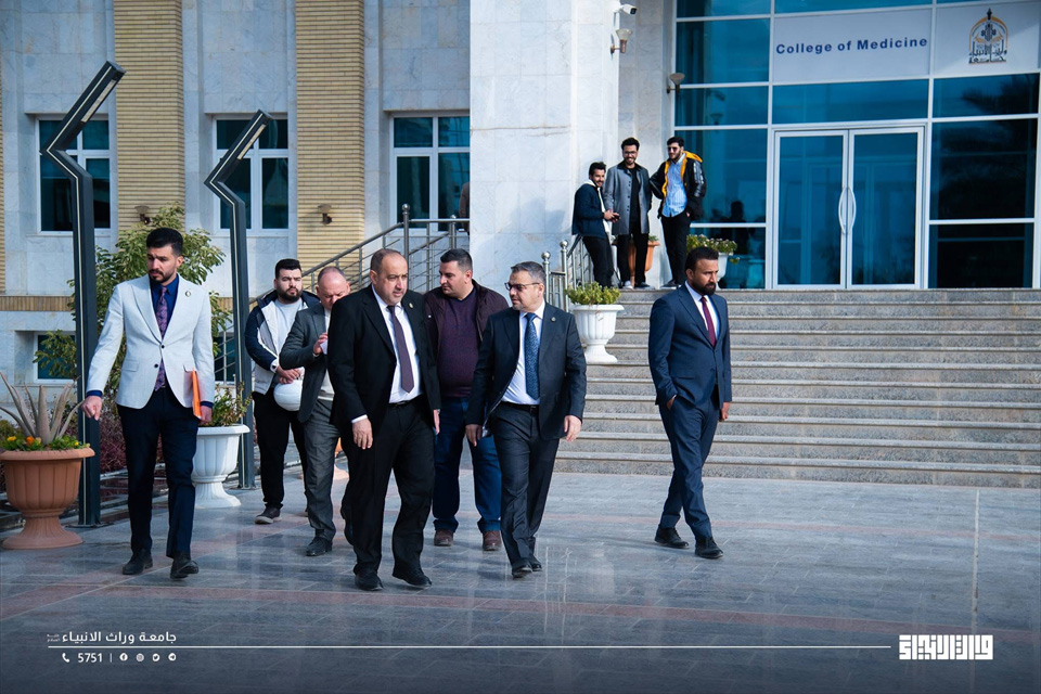 The President of Warith Al-Anbiyaa University (peace be upon him), Prof. Dr. Ibrahim Saeed Al-Hayyawi, accompanied by the Scientific Assistant to the President, Prof. Dr. Waqid Al-Mousawi, conducted a field tour across the university campus, during which he reviewed the educational atmosphere and the academic conditions of students, and observed their needs as part of ongoing efforts to enhance the learning environment.