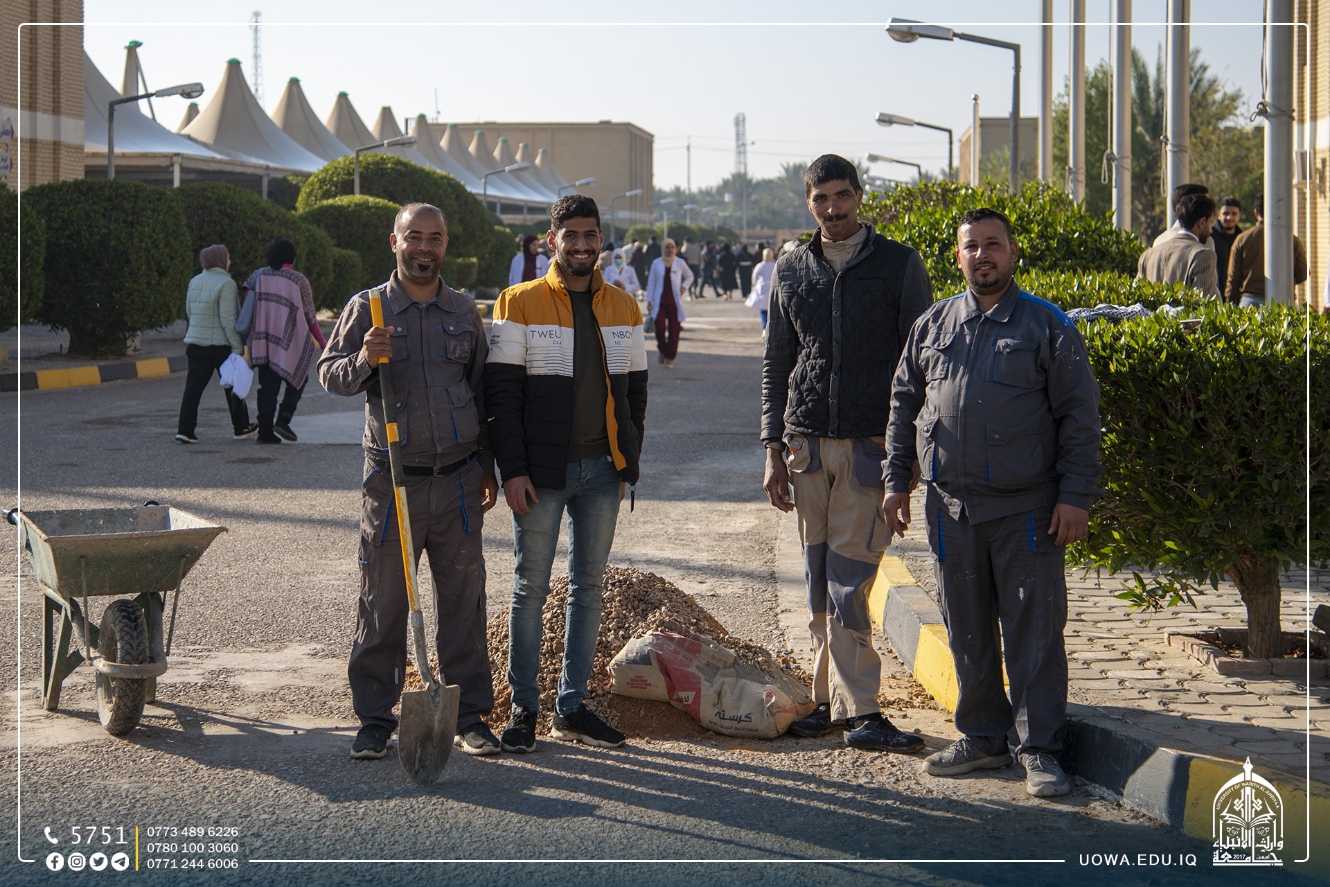 In pictures... Exceptional efforts of the staff of the Diwan Affairs Department at the University of Warith Al-Anbiyaa (peace be upon him) by paying attention to green spaces and the cleanliness of the university to represent it in the best way.