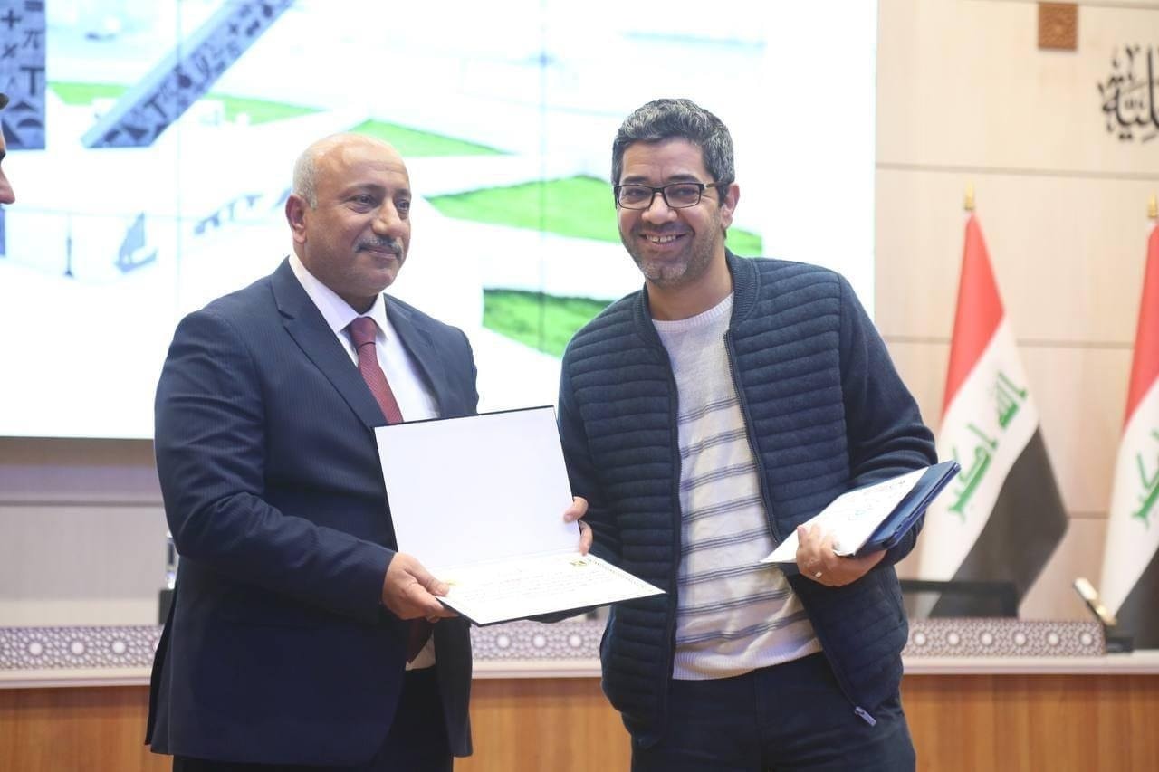 An Engineering College Student / Civil Engineering Department / Evening Studies, Ibrahim Qais Hatem, won an advanced rank in the exhibition of the advanced works of the Iraqi Engineer Monument competition held by Karbala Engineers Union under the sponsorship of Karbala Governon, Eng. Nassif Al-Khattabi and in the presence of the Iraqi Engineers Union, Thulfiqar Al-Maksousi and the Dean of Engineering College at Warith Al-Anbiyaa University, Prof. Dr. Waqid Al-Musawi.