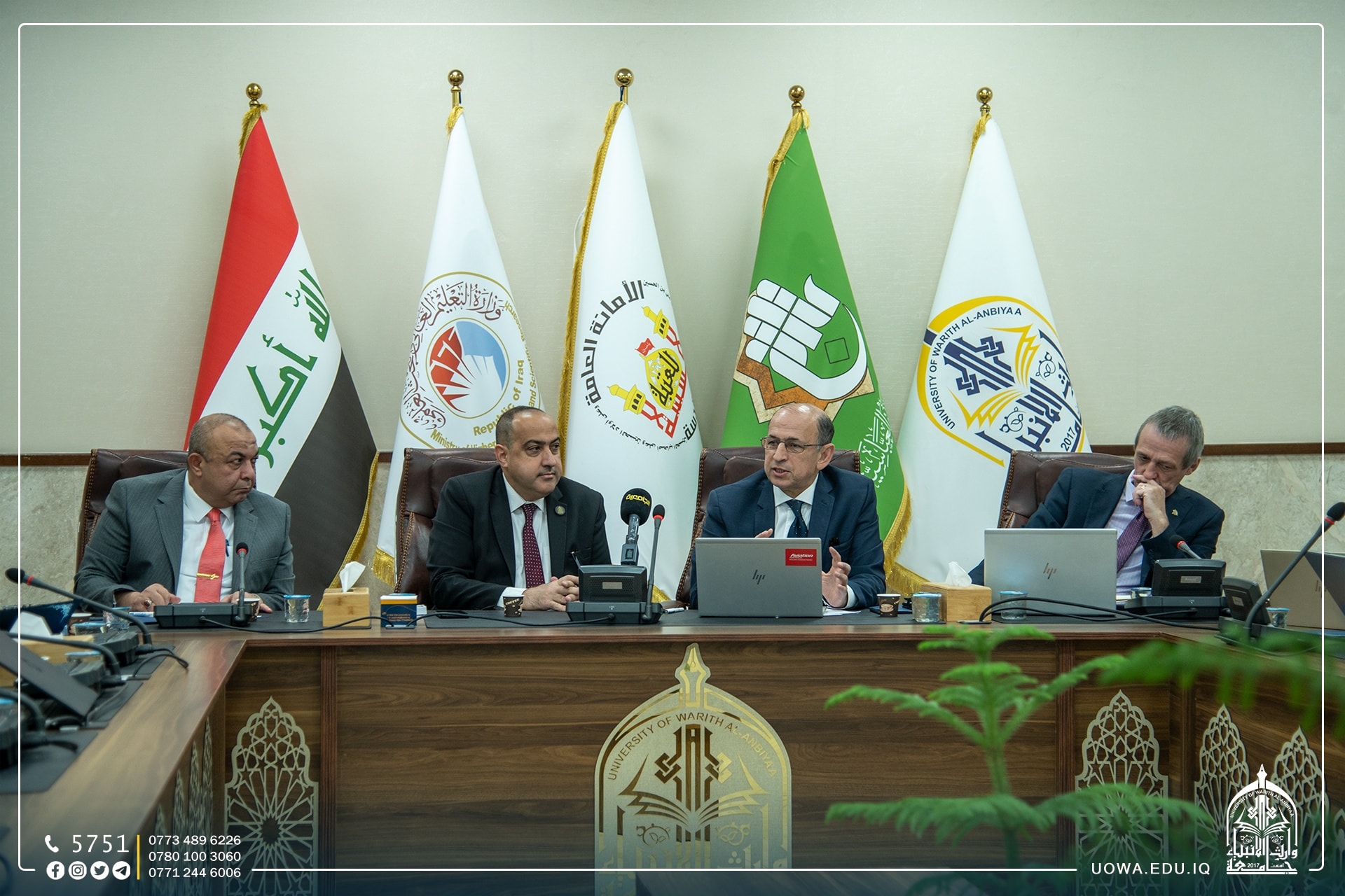During his visit to Warith Al Anbiyaa University  and his meeting with the President of the University, Prof. Ibrahim Al-Hayawi, Prof. Shafiq Al-Mawla, President of Alayen University, explained the possibility of scientific and academic cooperation between the two universities. In addition to the two parties' emphasis on implementing the strategy of the Ministry of Higher Education in developing plans to enter the international rankings and the possibility of receiving foreign students in our universities.