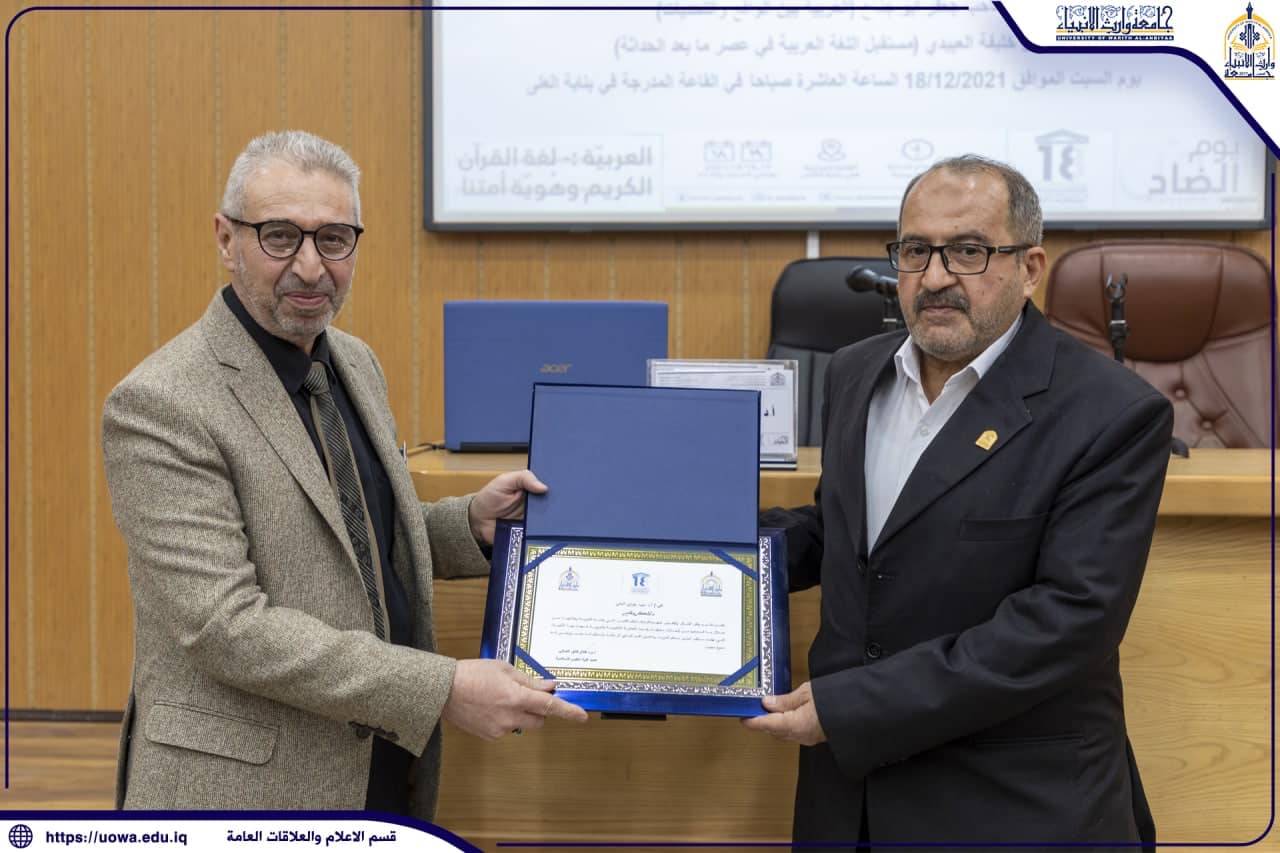 On the occasion of World Arabic Language Day, and in the presence of Mr. Haider Al-Tamimi, Head of the Higher Education Authority, and under the patronage of the President of the University, Professor Dr. Ibrahim Al-Hayawi, Warith Al-Anbiyaa University (Peace Be Upon Him), in collaboration with the Colleges of Islamic Sciences and Law, organized its first festival under the theme "Arabic: The Language of the Holy Quran and the Identity of Our Nation." The festival, spanning two days, welcomed a qualitative and quantitative attendance of Arabic language professors, enthusiasts, and students. The first day of the festival featured the presentation of two research papers by eminent language researchers, highlighting the importance of Arabic as an identity that should be preserved and cherished.