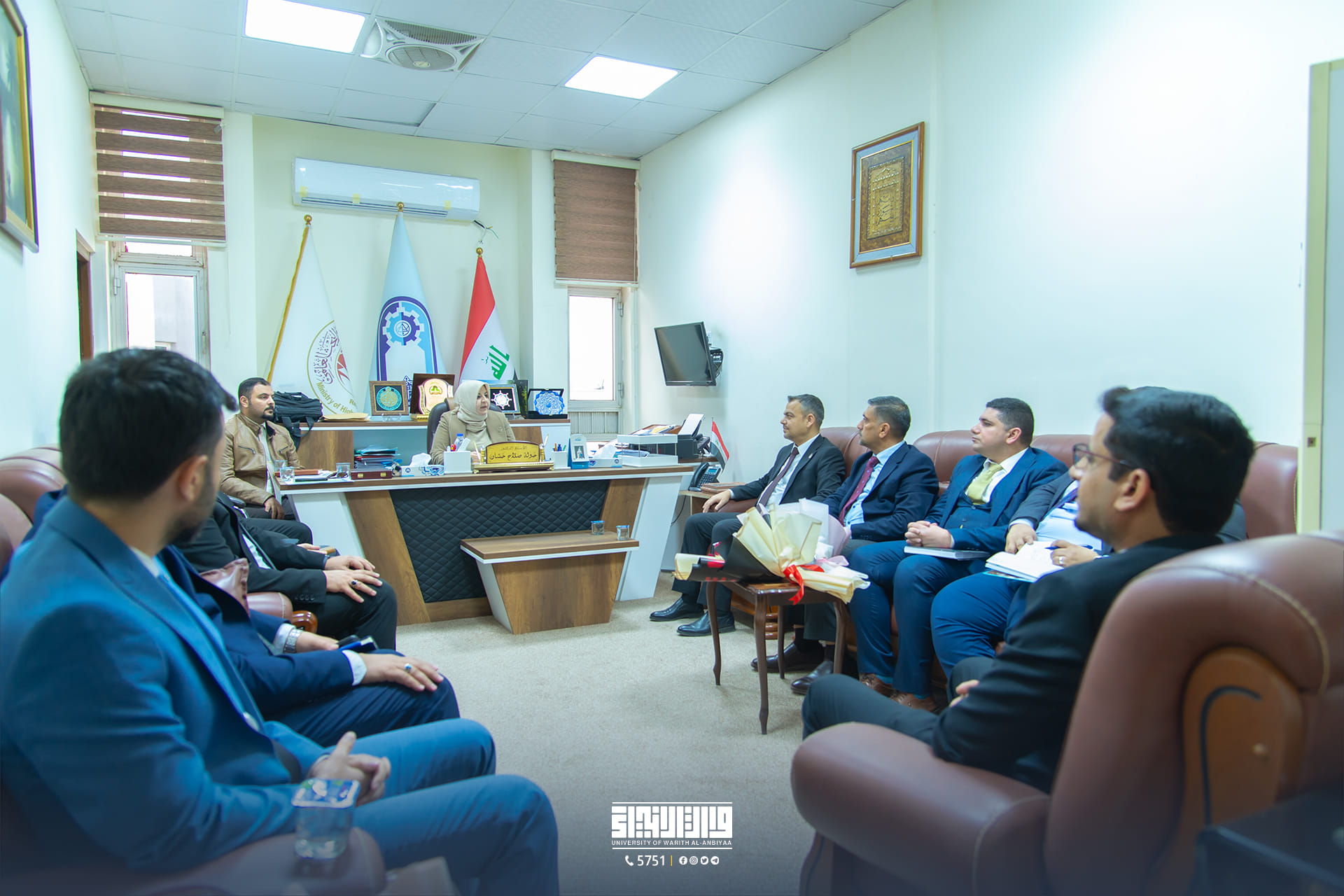 The university delegation included the Assistant Scientific, Dr. Waqad Al-Mousawi, the Dean of the College of Engineering, Dr. Hussein Al-Awadi, and his assistant Dr. Ali Basim. They were greeted by the President of Technological University, Dr. Ahmed Al-Ghban, and the Assistant Scientific Dr. Khawla Salah Khushan, along with heads of scientific and administrative departments at the university.