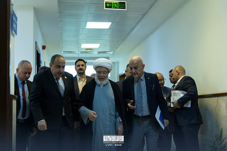 His Eminence Sheikh Abdul Mahdi Al-Karbalai stressed the importance of paying attention to the scientific aspect and using all available capabilities for that, as well as attracting both Iraqi and international competencies and expertise to teach at the university, support scientific research, and encourage researchers in this area with the aim of reflecting a positive image on the quality of scientific outputs. The visit was intended to discuss ways to develop the educational process, from the scientific, academic, and administrative aspects, in an effort to achieve the desired goals of advancing and distinguishing the educational mission. His Eminence emphasised the significance of considering psychological and educational counsel, pointing out that it is just as vital as the scientific part.
