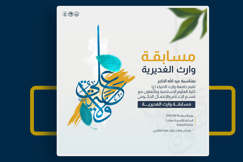 In honour of Allah's Greatest Eid, Eid Al-Ghadeer Al-Aghar [The Glorious], the College of Islamic Sciences at the University of Warith Al-Anbiyaa, in collaboration with the Department of Media and Government Communication, presented the "Warith Al-Ghadiriya Competition."