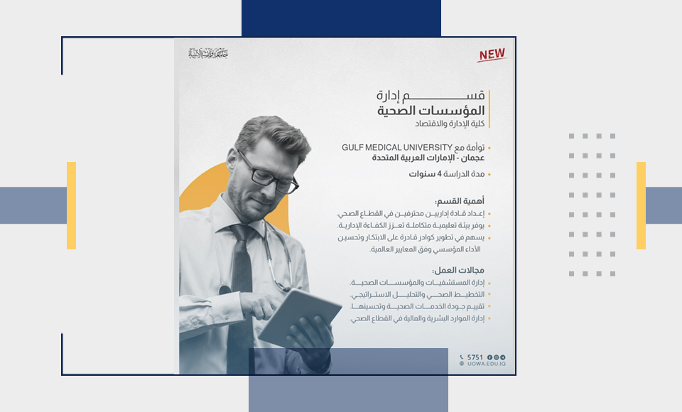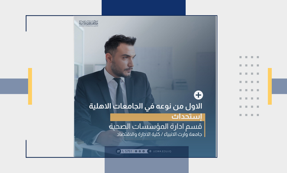 The Health Institutions Management Department at the College of Administration and Economics – Warith Al-Anbiyaa University qualifies you to be a part of leading the modern health system in the country.