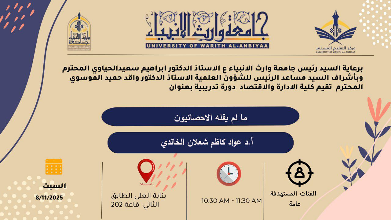 The College of Administration and Economics at Al-Warith University is holding a course titled
