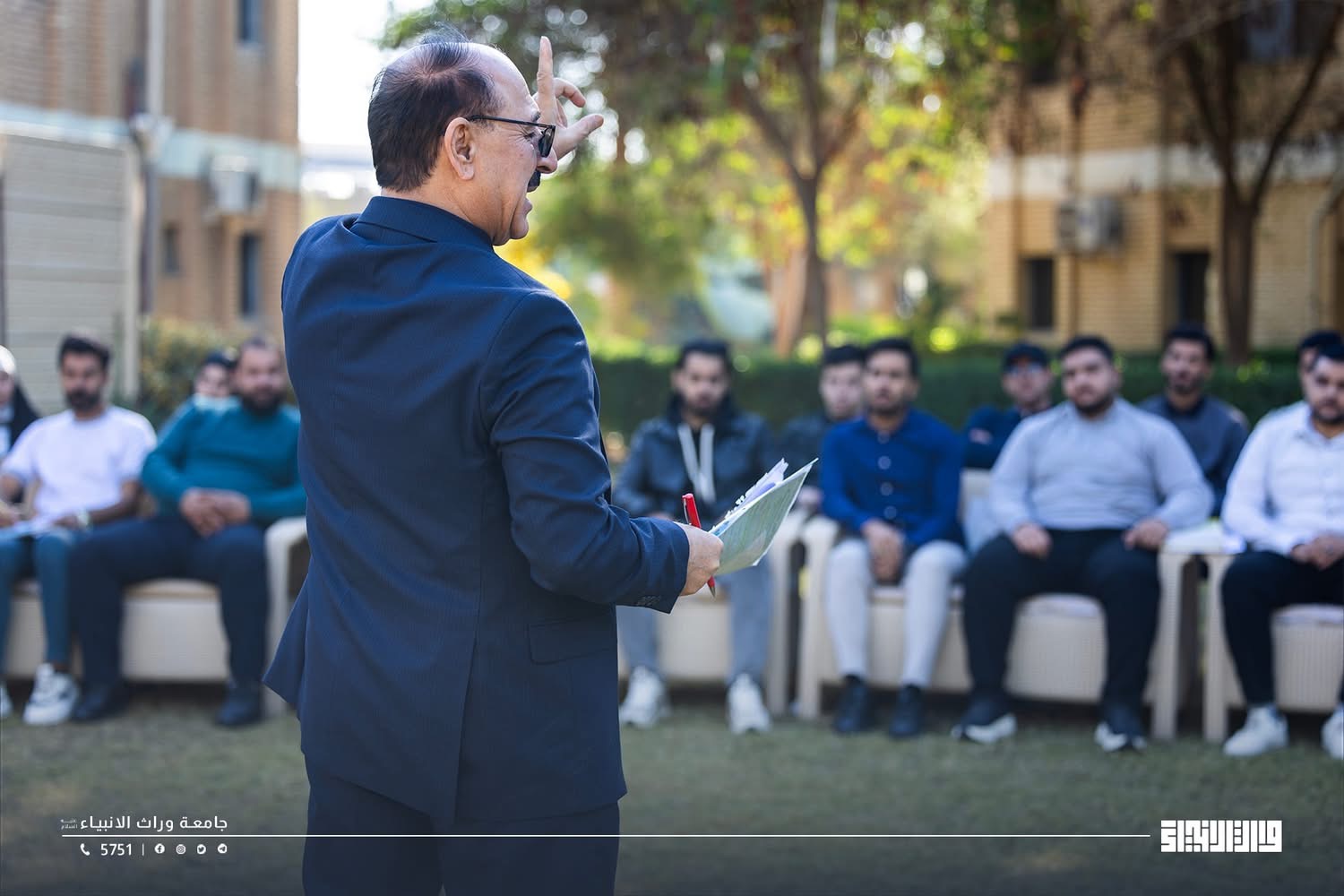 The College of Administration and Economics at Warith al-Anbiya University (peace be upon him) organized an outdoor lecture in the university gardens, with wide participation from students, aiming to break the academic routine and enhance academic interaction