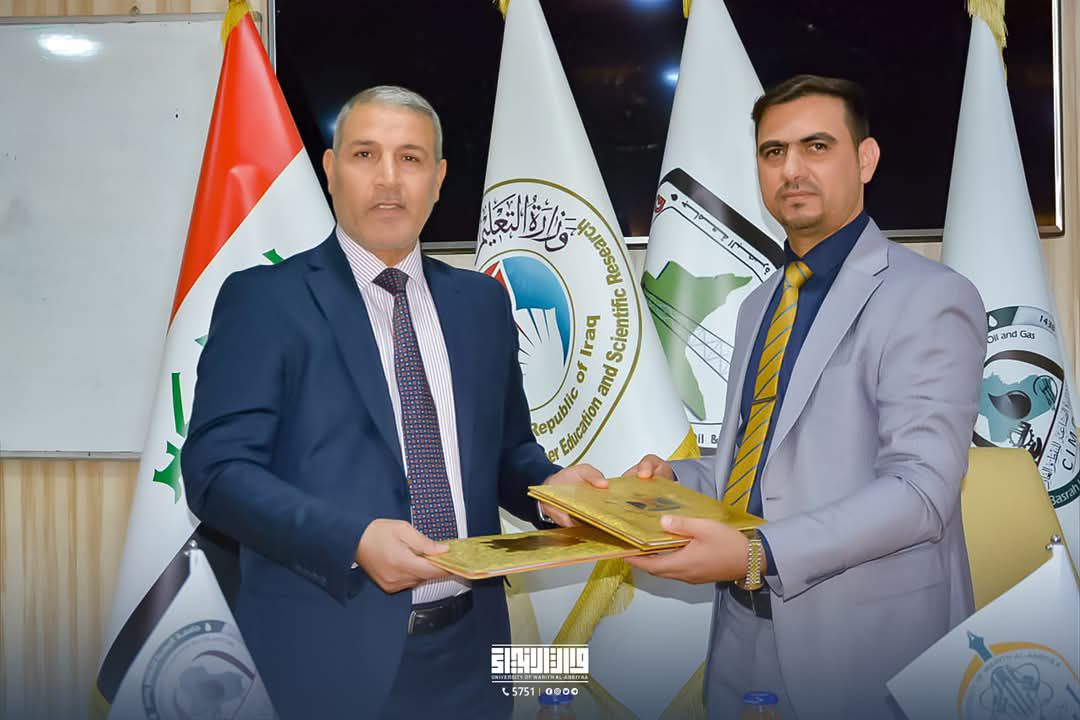 In its continuous effort to seriously improve the higher education system in our beloved country and serve our dear students, the College of Administration and Economics at Warith Al-Anbiya University (peace be upon him) signed a scientific cooperation agreement with the College of Industrial Administration for Oil and Gas at the University of Basra. Representing the university were the two assistants to the Dean of the College of Administration and Economics, Dr. Fahd Mughaymish Al-Shammari and Dr. Hussein Matouk, while representing the College of Industrial Administration was the Dean of the college, Professor Dr. Sami Obaid Al-Tamimi. The agreement included various academic and scientific activities, such as exchanging scientific visits, organizing conferences, joint research writing between the professors of both universities, as well as performance evaluation, scientific supervision, and student training programs.