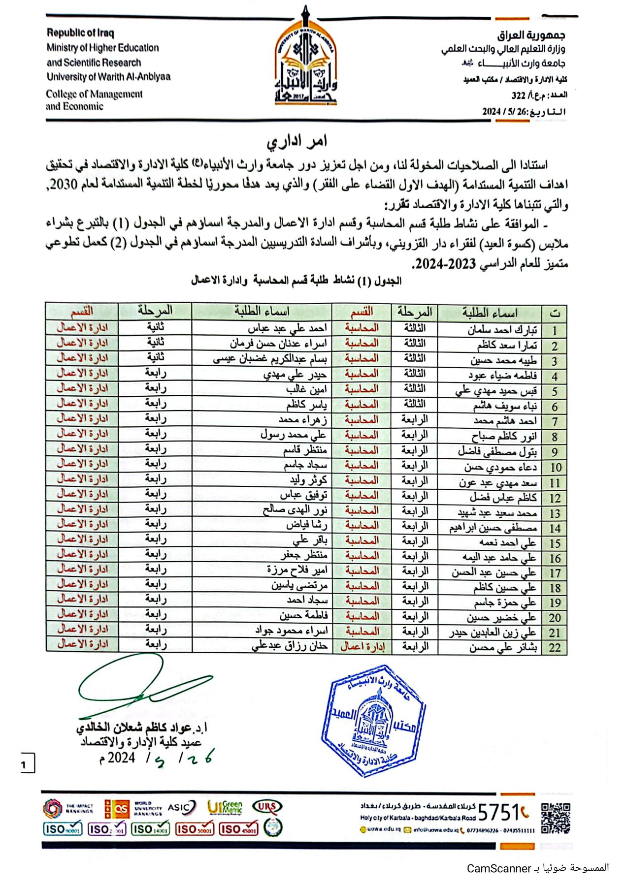 The College of Administration and Economics, along with its students, organized a voluntary initiative to buy Eid clothing for the poor at Al-Qazwini House, promoting the spirit of social solidarity and supporting the community.