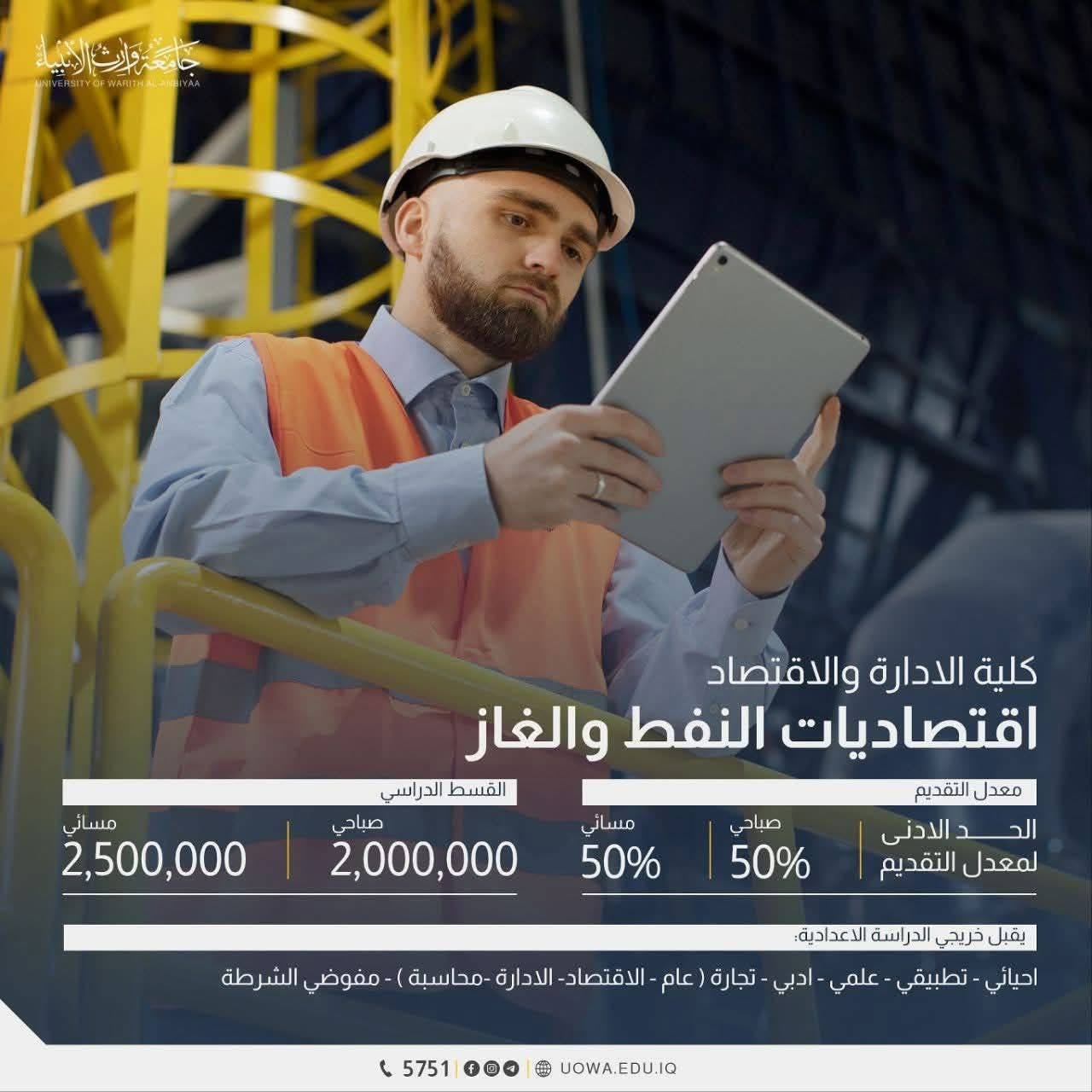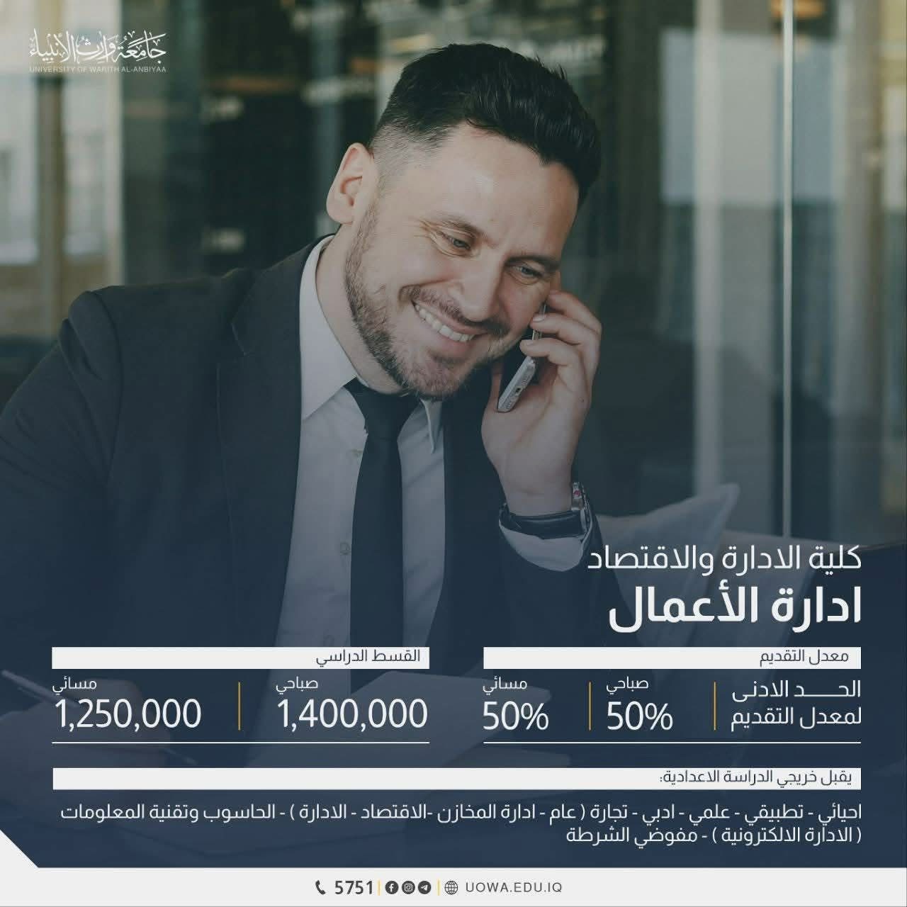 Discover the admission inputs and required average scores for the departments of the Colleges of Administration and Economics at Warith Al-Anbiyaa University
