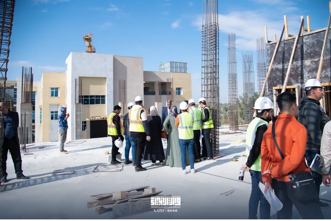 The Civil Engineering Department at Warith Al-Anbiyaa University (peace be upon him) organized a field visit for its students to the expansion projects being implemented on the university campus, with the aim of enhancing their practical experience and informing them of the latest construction methods and civil engineering applications used in developing the university’s infrastructure.