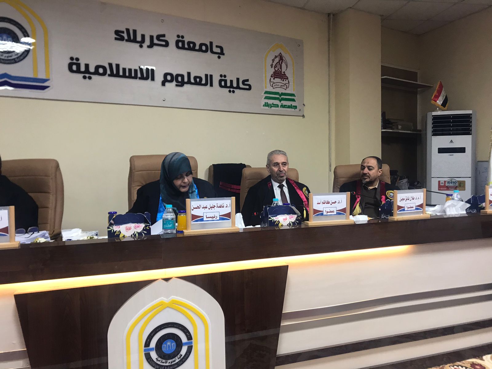 Dean of the College of Islamic Sciences participates in the discussion of a doctoral thesis at the University of Karbala