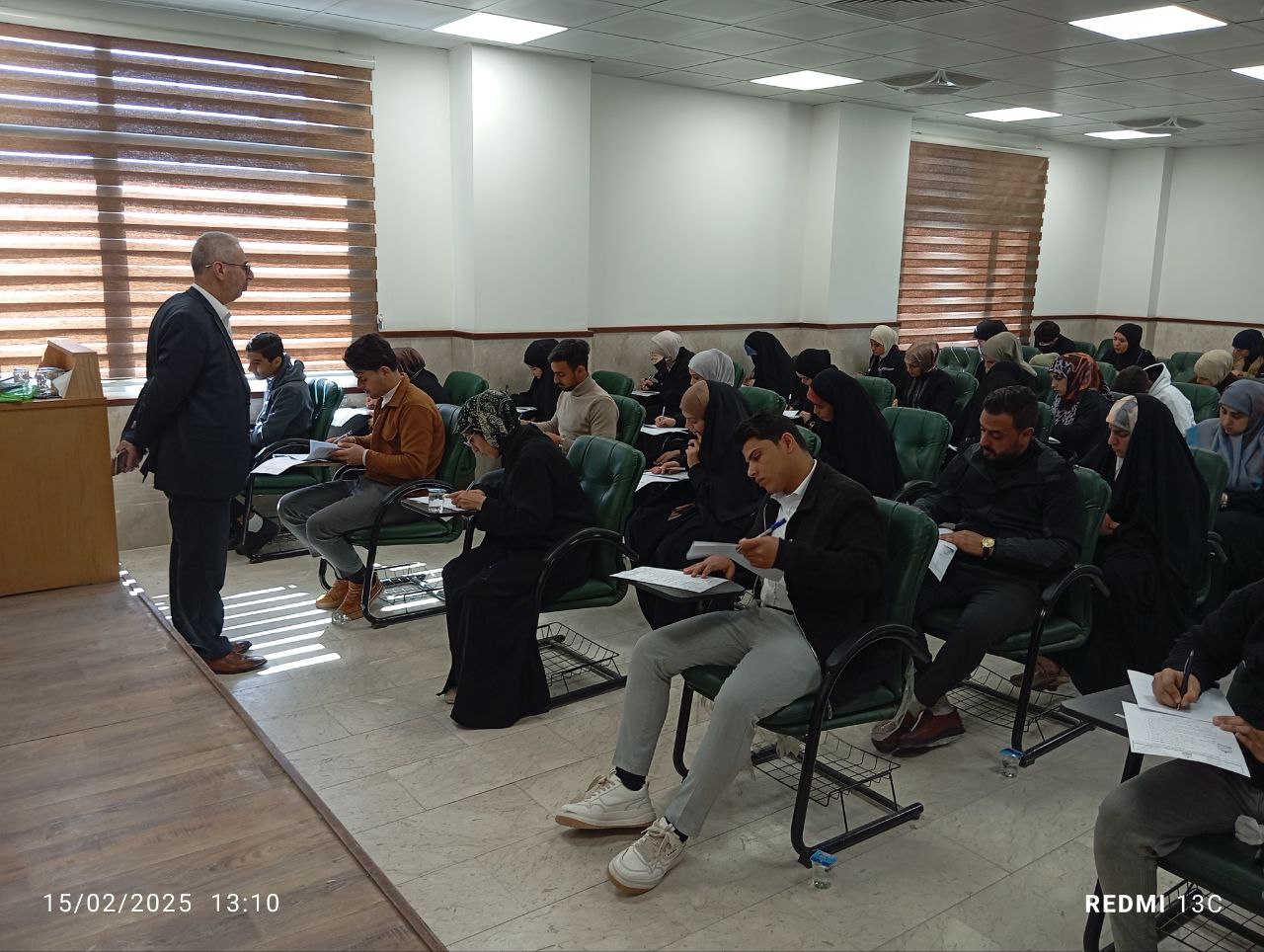 The discussion session was held on Sunday 5/1/2025 in the Imam Al-Hussein Hall (peace be upon him) at the College of Islamic Sciences at the University of Karbala, in the presence of an elite group of professors and specialists.