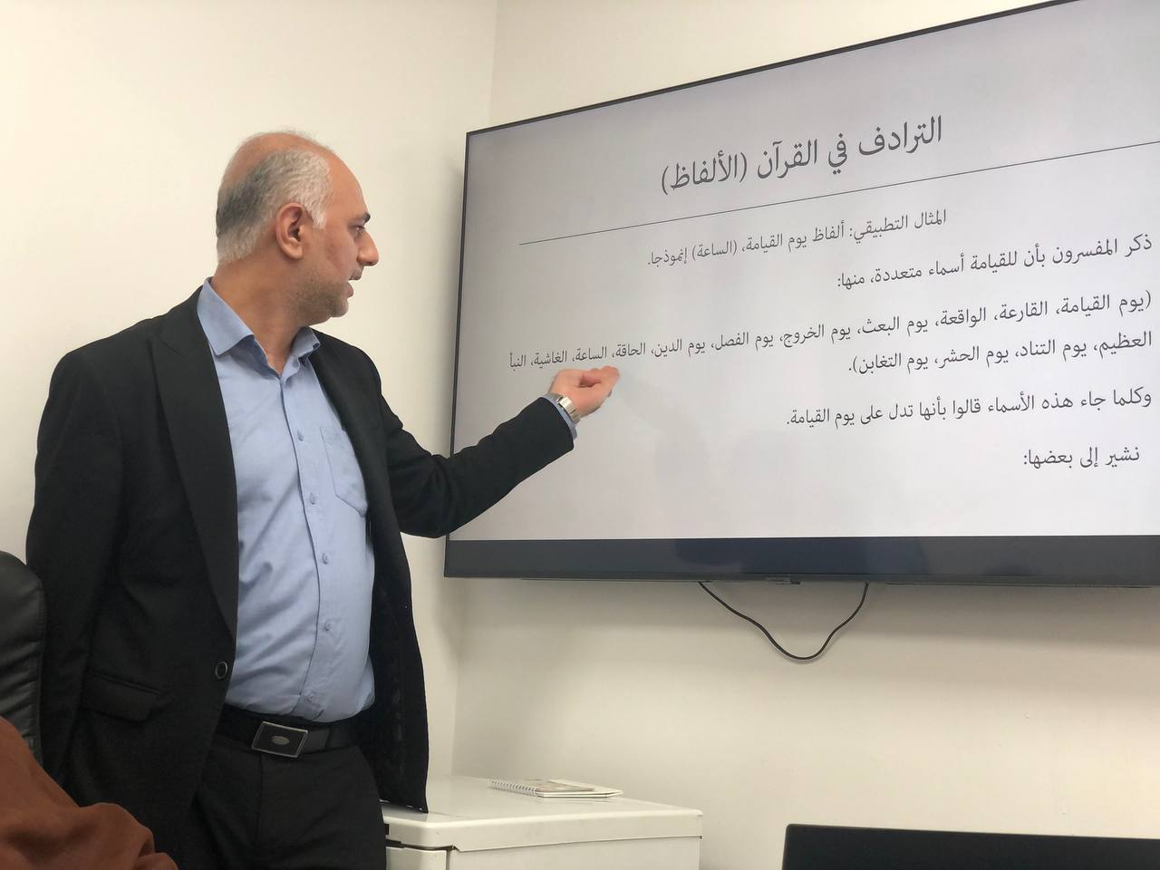 Dr. Muntadhar Shukr Khedr lectured in the course, with the aim of enhancing knowledge about the role of synonymy in a deep understanding of the interpretation of the Holy Quran.