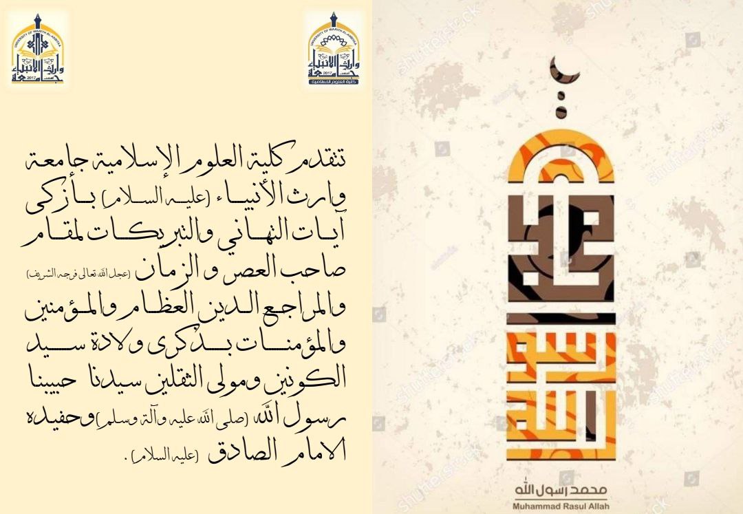 The Deanship and the teaching staff at the College of Islamic Sciences extend their best congratulations to their dear sons on the occasion of the anniversary of the birth of the Saviour of Humanity, the Great Messenger (PBUH), as well as their return to university, wishing them success and the highest levels of achievements in their academic and professional careers. Additionally, reminding them to draw inspiration from the biography of the Noble Prophet (PBUH) to move forward in overcoming all difficulties and challenges with determination, steadfastness, seriousness, and diligence. Moreover, the dean encourages the students and says that their slogan for this year should be with Muhammad (PBUH), following his example of knowledge and work.