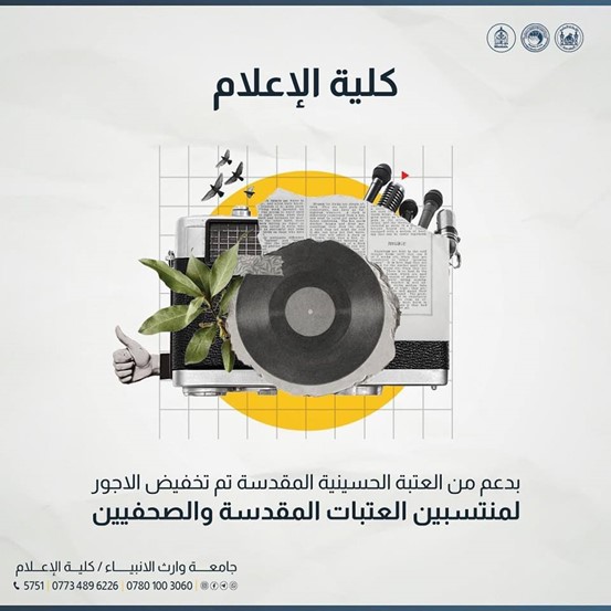 It includes a department for digital media.. Creating a college of media at the University of Heir al-Anbiya, affiliated with the Hussein shrine.