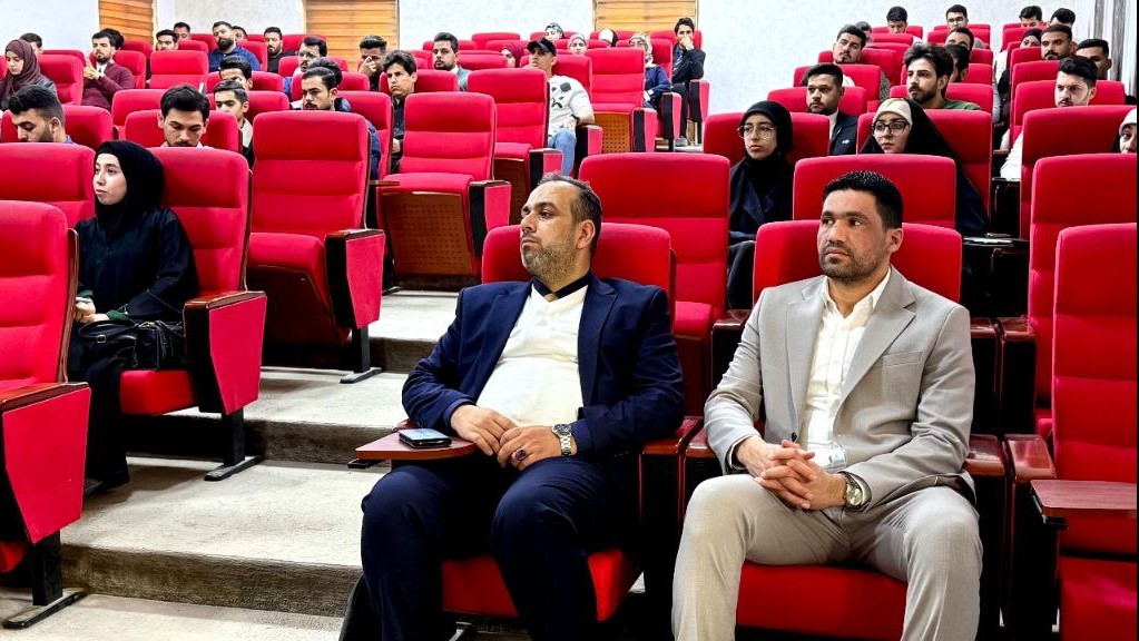 The seminar was supervised by Professor Dr. Hussein Kashkool and moderated by Assistant Lecturer Hazem Fadel, Head of the Advertising and Digital Marketing Communication Department.