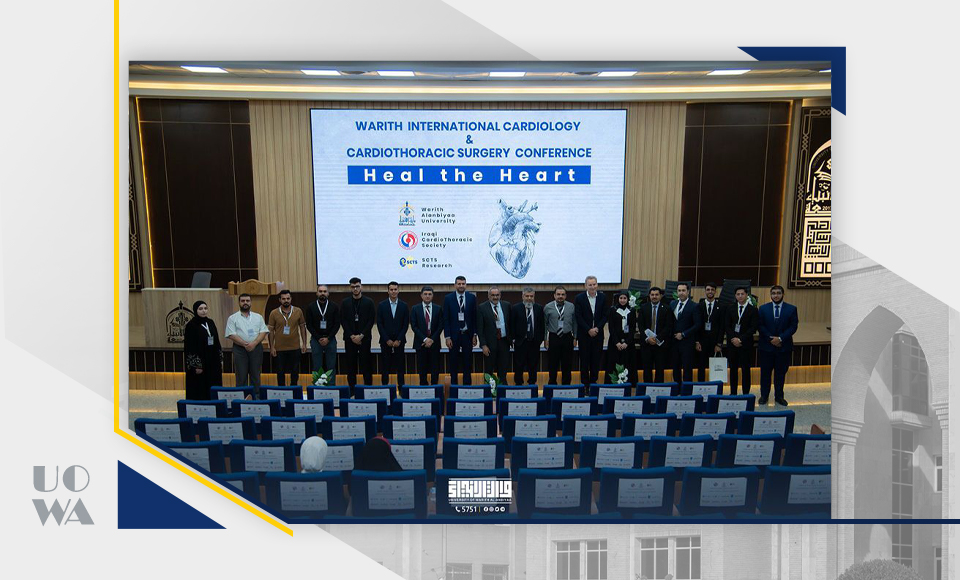 In embodiment of the interest of the Holy Shrine of Imam Hussein and working with the principles of honest work derived from the thought of the Master of Martyrs, peace be upon him, the College of Medicine, Warith Al-Anbiya University, held ((The First International Warith Conference on Heart and Chest Diseases and Surgery)) with the attendance of the President of the University, Professor Dr. Ibrahim Saeed Al-Hayawi, and Dr. Saad Al-Din Al-Banna (Office of the Legal Guardian, may his shadow last) and a number of local and international scientific and academic figures.