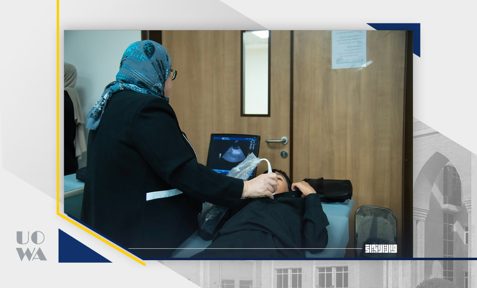 Based on the spirit of solidarity and social responsibility, and in the presence of the University President, Professor Ibrahim Saeed Al-Hayawi, the College of Medicine at Warith Al-Anbiya University (peace be upon him), in cooperation with the Mercy Organization for Child Health, organized a humanitarian health initiative for early detection of heart disease among a number of orphaned children from the Imam Reza (peace be upon him) Charitable Foundation, affiliated with the representative office of the Supreme Religious Authority, His Eminence Sayyid Ali Al-Husseini Al-Sistani (may his shadow endure) in the holy city of Karbala.