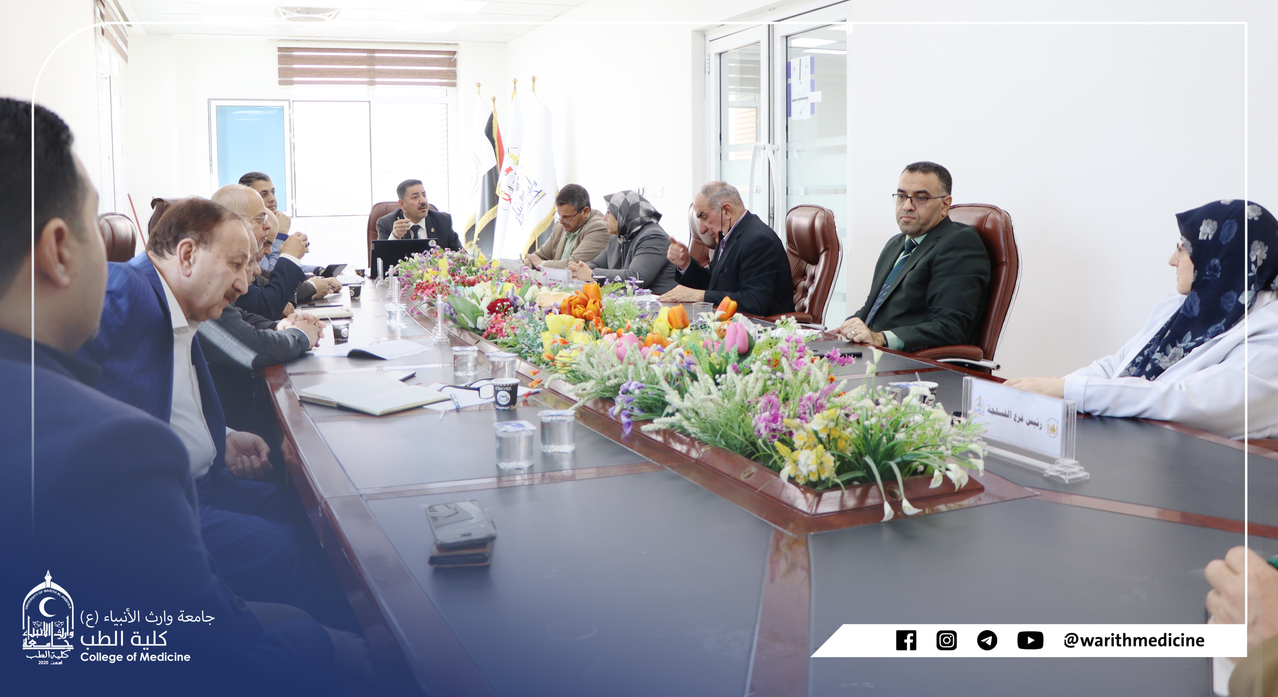 The Council of the Faculty of Medicine, Heir al-Anbiya University (peace be upon him) holds its regular session in the presence of the respected Dean of the Faculty of Medicine, Professor Dr. Ali Abd Saadoun, the distinguished assistants, and the heads of the branches.