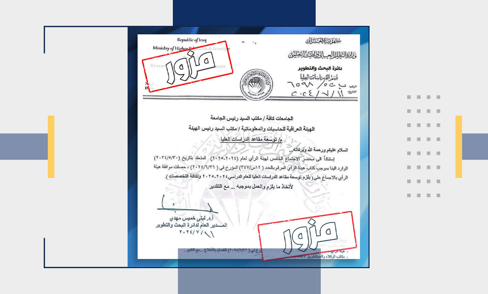 The Ministry of Higher Education and Scientific Research issued a warning over the dissemination of a fake book that purported to increase postgraduate study admissions.