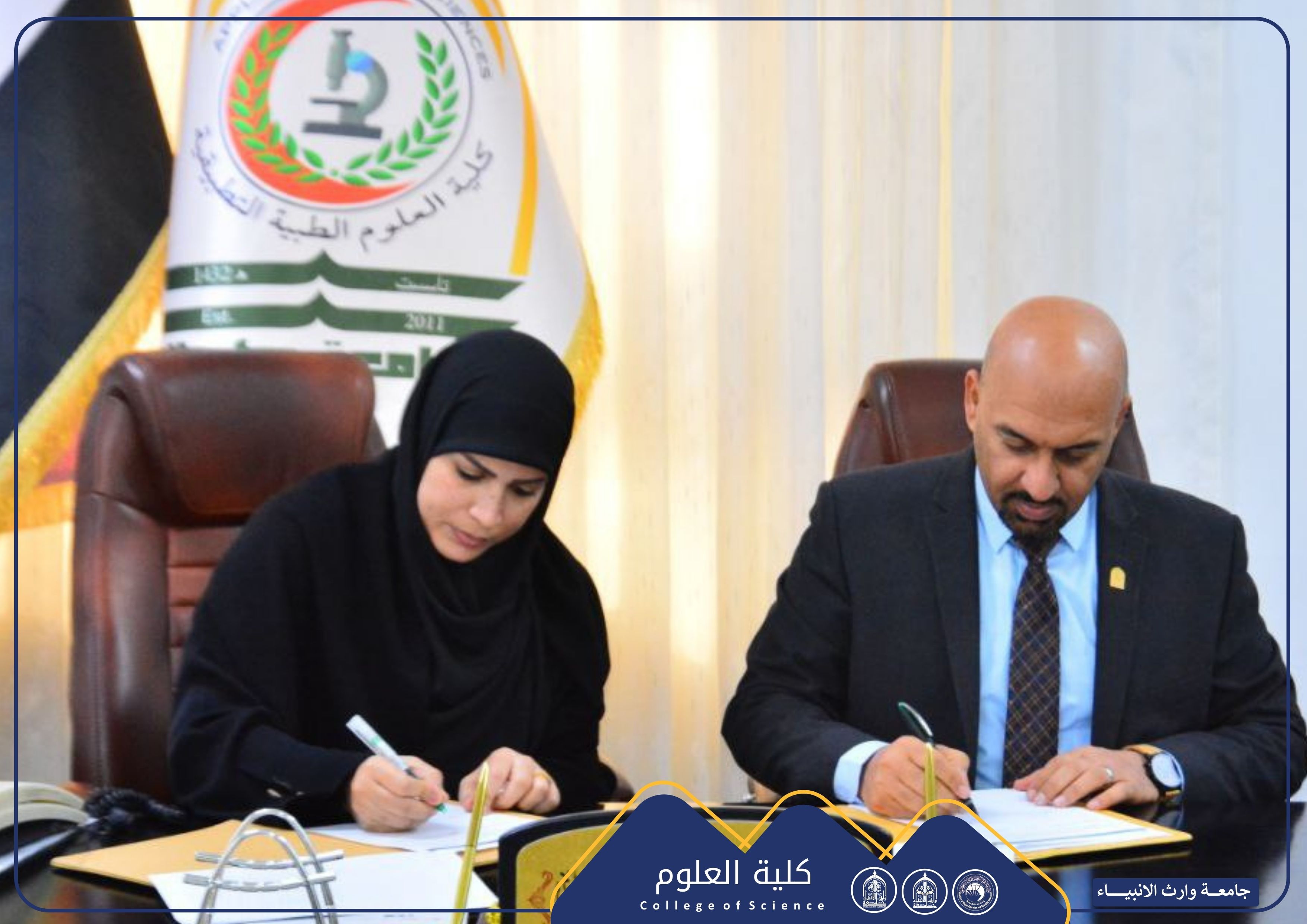 As part of strengthening academic cooperation and exchanging scientific expertise, Assistant Professor Dr. Shaimaa Hussein Nofal, Dean of the College of Science at Warith Al-Anbiyaa University (peace be upon him), signed a scientific twinning agreement with Assistant Professor Dr. Hassan Faisal Al-Yassari, Dean of the College of Applied Medical Sciences at the University of Karbala.