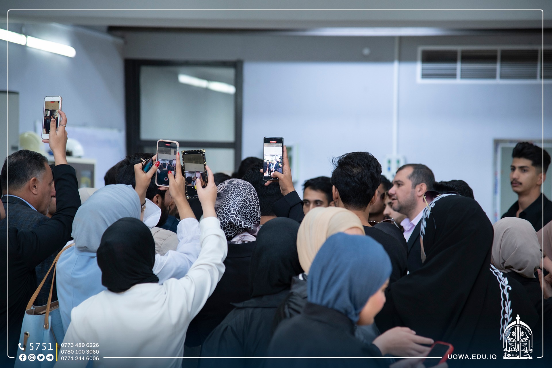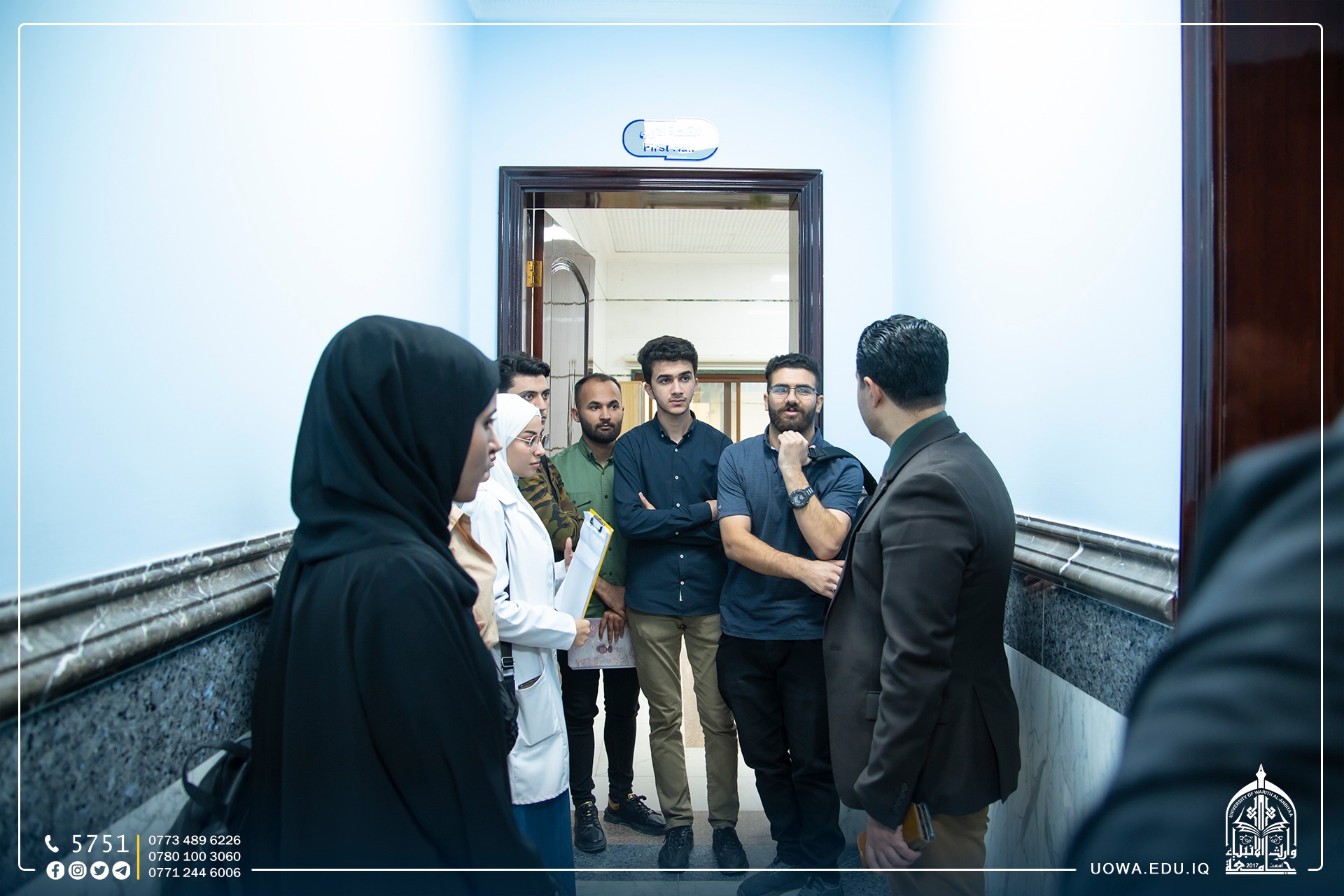A group of students from the University of Baghdad, specifically from the College of Arts, Department of Geography, accompanied by faculty members, visited the University of Warith Al-Anbiyaa (peace be upon him) on a scientific excursion. During the trip, the students explored the university's halls and its scientific laboratories, gaining insights into the academic and research facilities available.